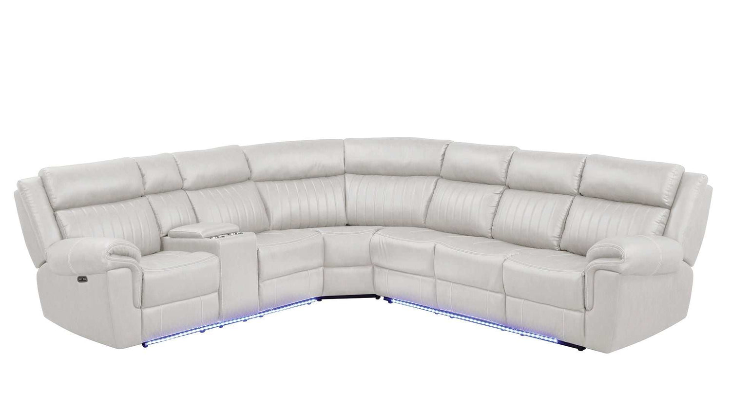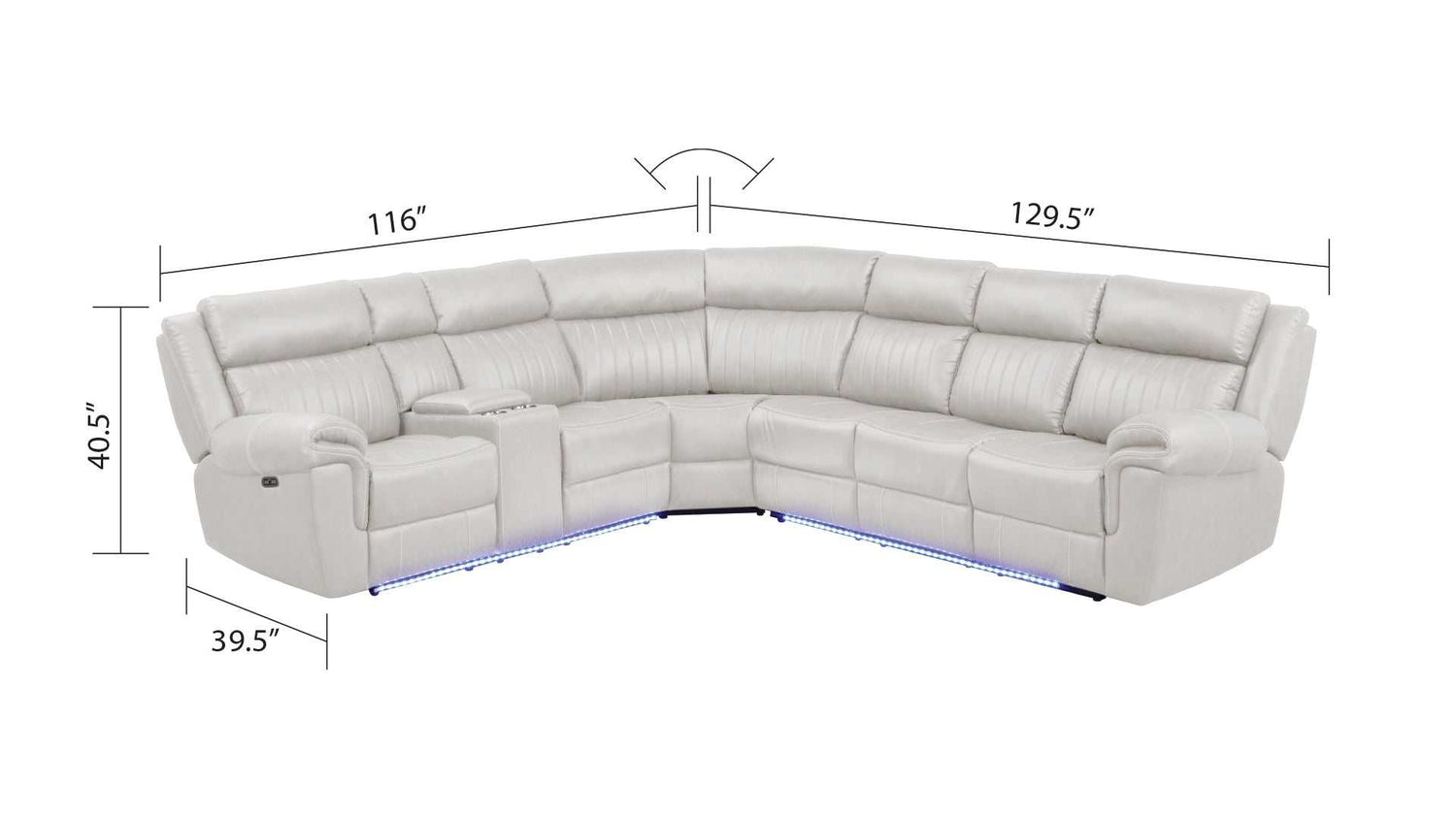 Aviator Ice Leather Power Reclining Sectional w/ Console & Drop-down Touchpad