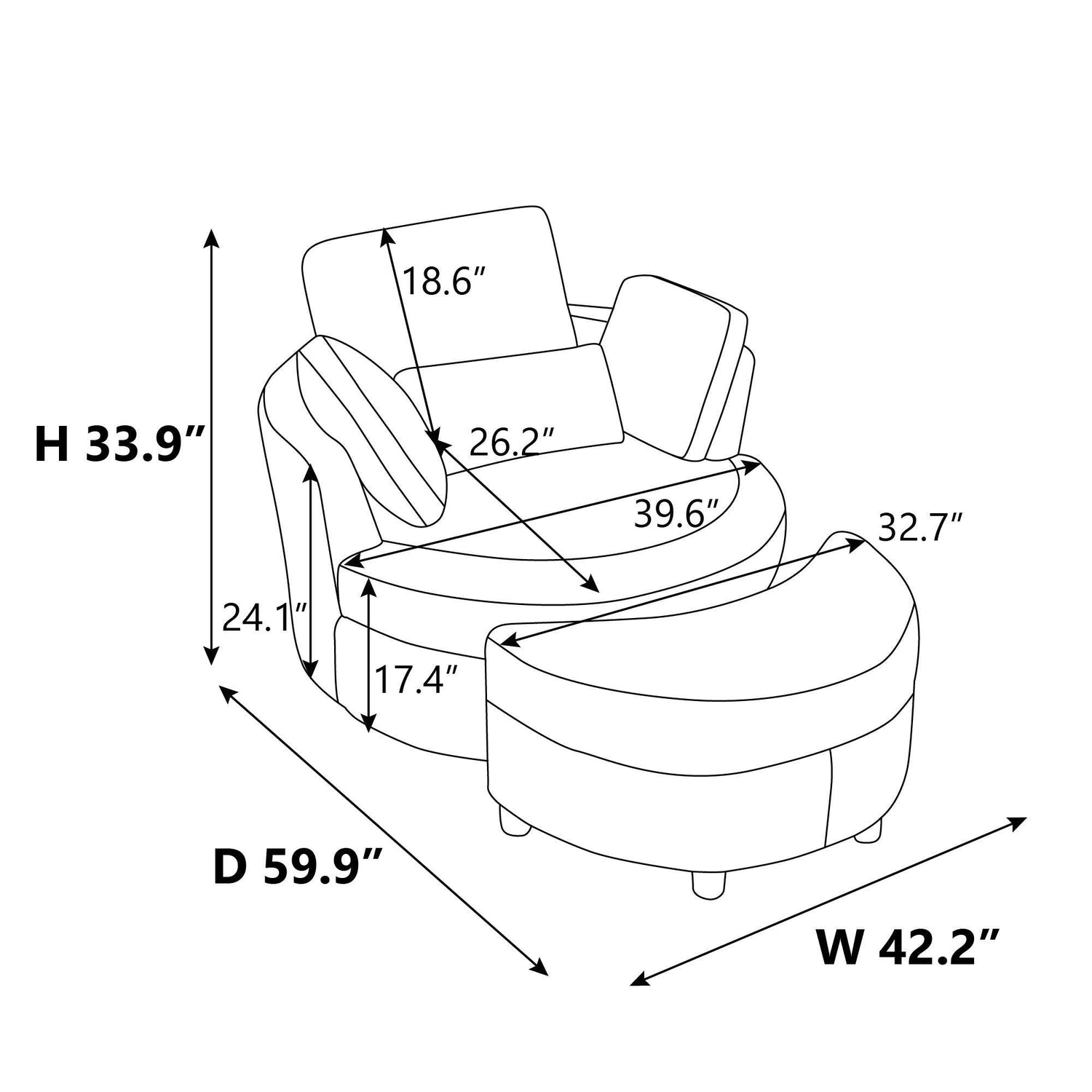 Upgrade your living space with this versatile and elegant combo. Whether you're entertaining guests or simply relaxing, this set offers both comfort and practicality. Elevate your home decor today with our Swivel Barrel Chair and Crescent Moon Ottoman Set!
