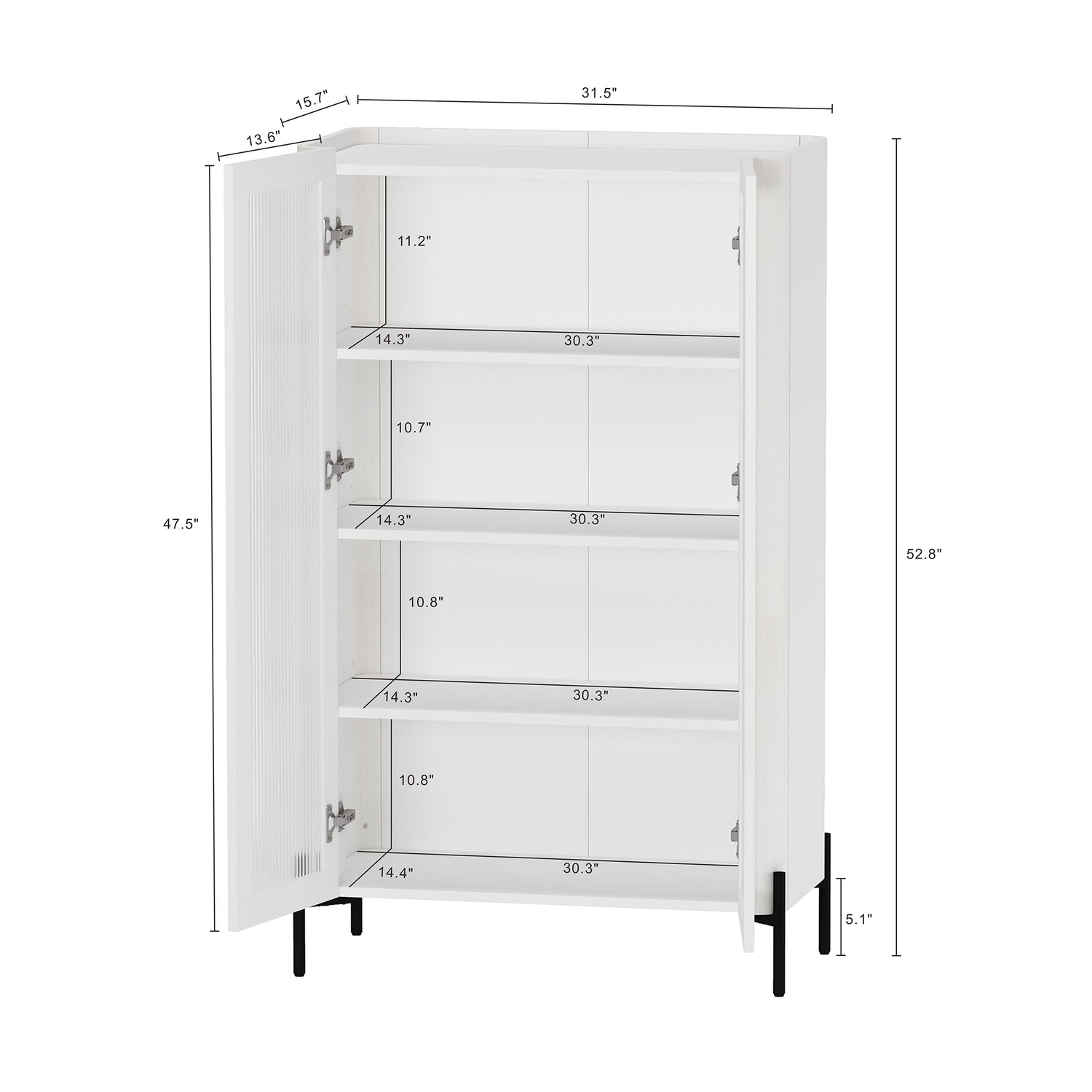 - Decor Cabinet Includes 2 Ribbed Tempered Glass Soft Close Doors with 4 Adjustable Shelf Spaces. Sideboard Includes 4 Soft Close Doors with 4 Adjustable Shelf Spaces.