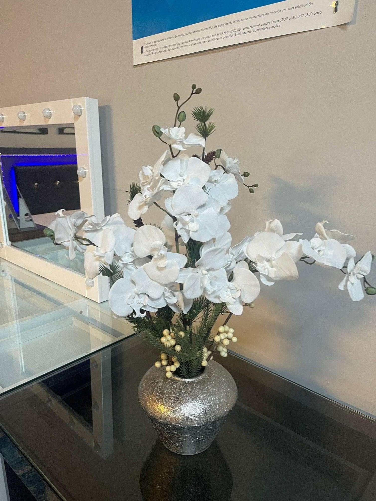 This artificial Velvet Orchid matches perfectly with any Indoor space, providing freshness and greenery for any room, terrace, balcony or patio. Realistic Appearance - The green leaves have a noticeable luster and vitality, creating a realistic appearance and will never fade. It will add a bright spot to any room.