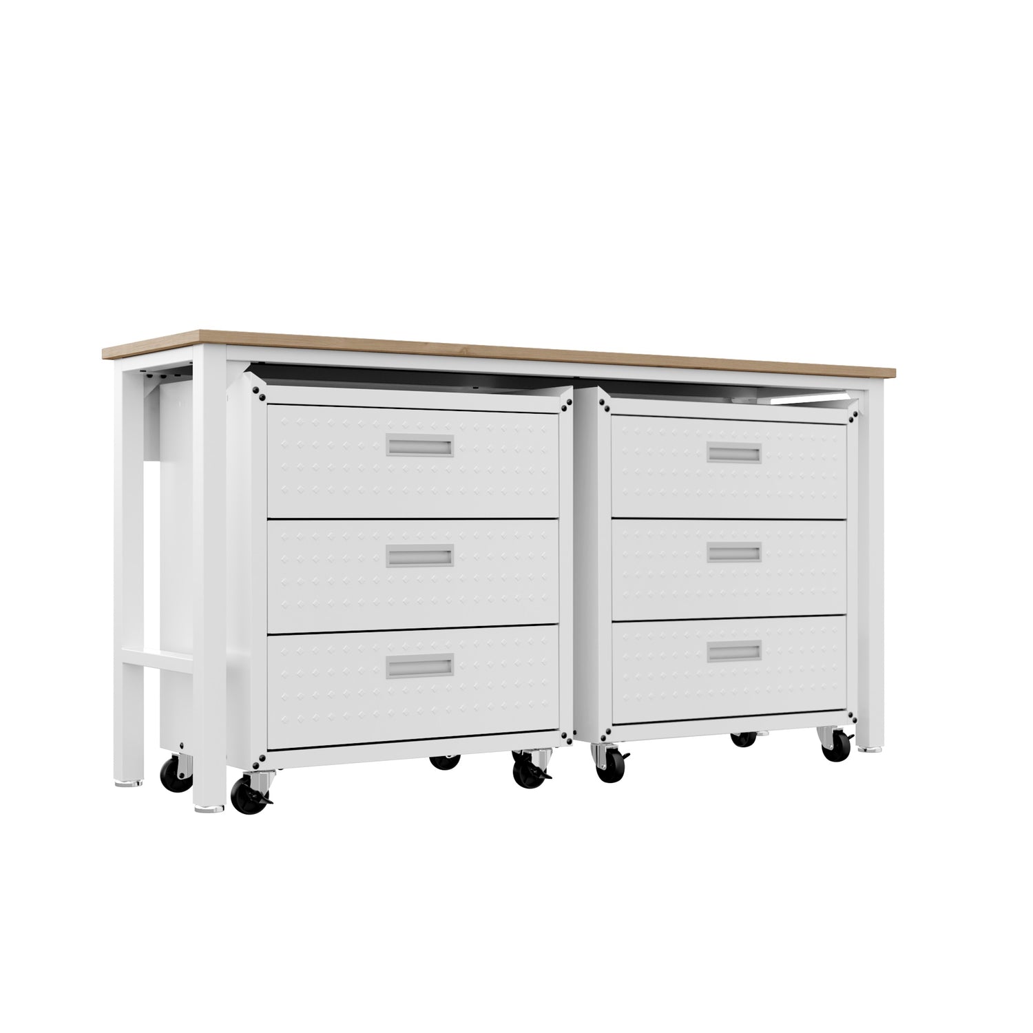 3-Piece Fortress Mobile Space-Saving Garage Cabinet and Worktable 6.0 in White