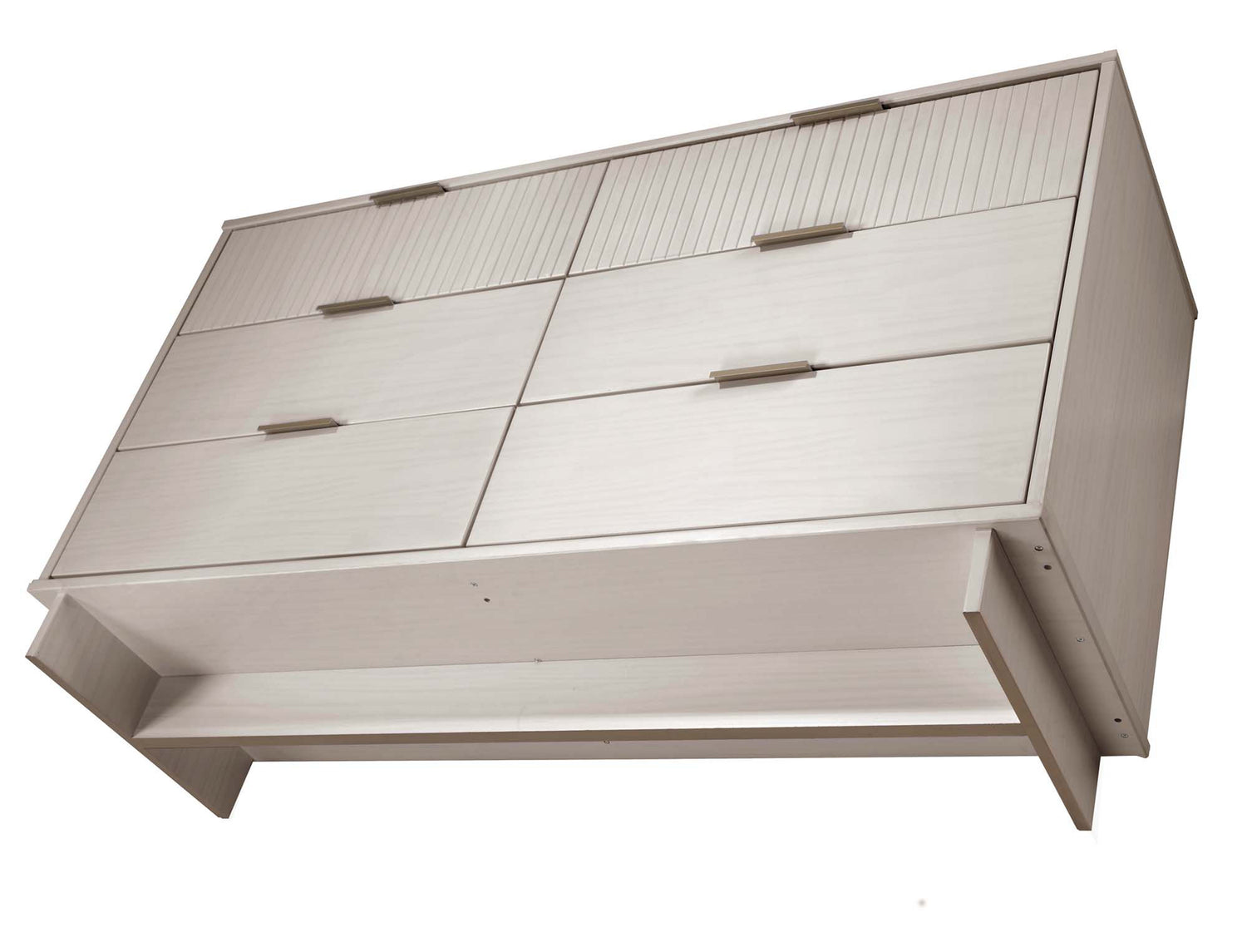 - Includes Full Extension Drawers with Top Drawer Designed in Vertical Textured Ribbed Lines Made from Solid Wood.
