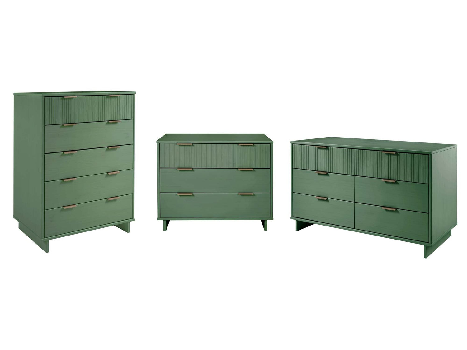 Granville 3-Piece Tall Narrow Chest, Double Dresser Set and Standard Dresser Set in Sage Green