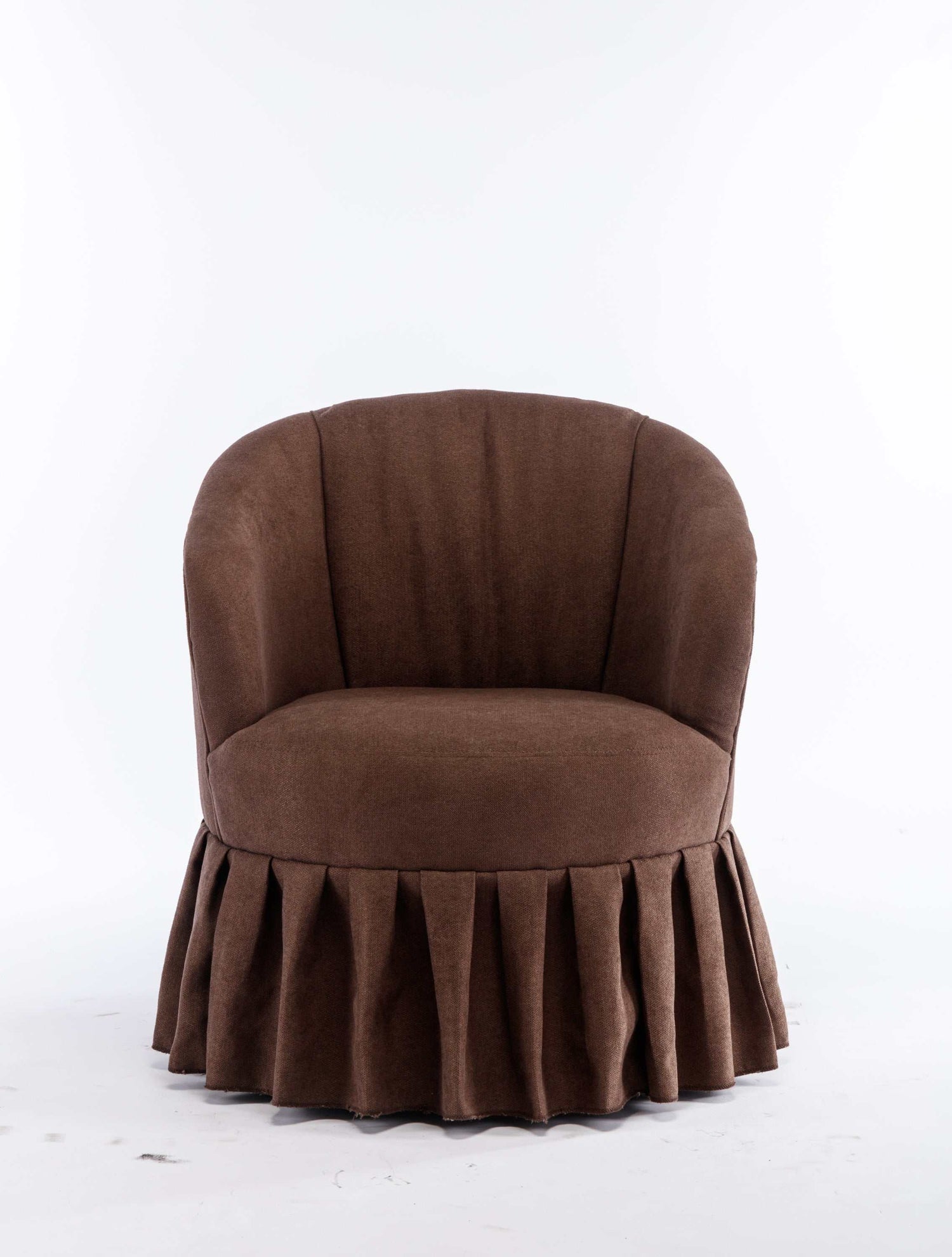 Upgrade your living room, bedroom, or even an auditorium with our sophisticated Linen Fabric Swivel Chair. The brown linen fabric upholstery exudes timeless elegance, complemented by a graceful pleated skirt. This accent chair not only adds a touch of refinement to your space but also offers the convenience of a swivel function. Its versatile design is perfect for various settings, from living rooms to bedrooms and even auditoriums.