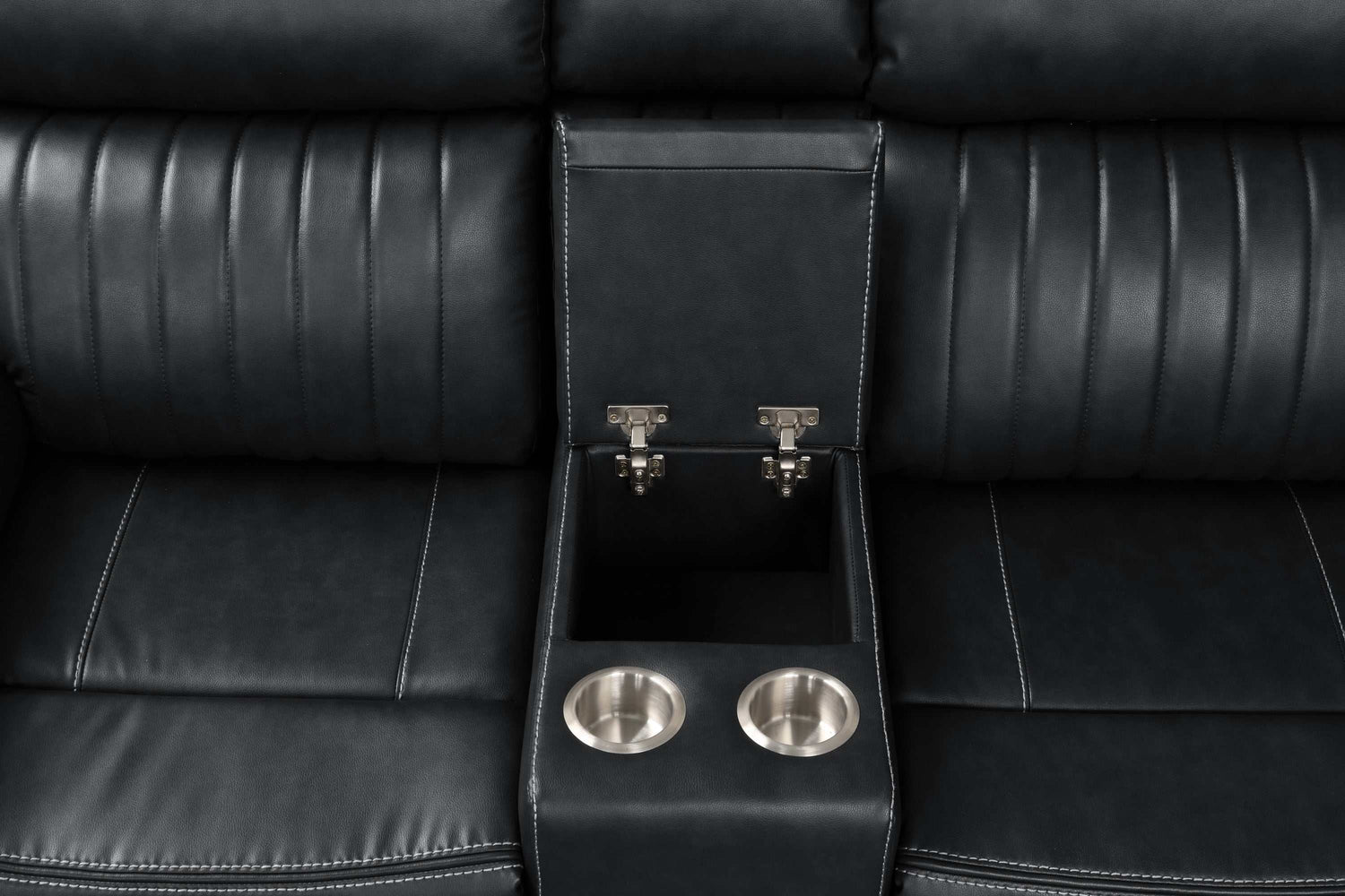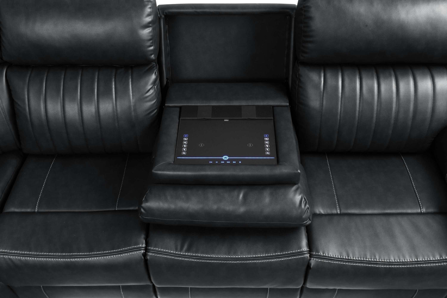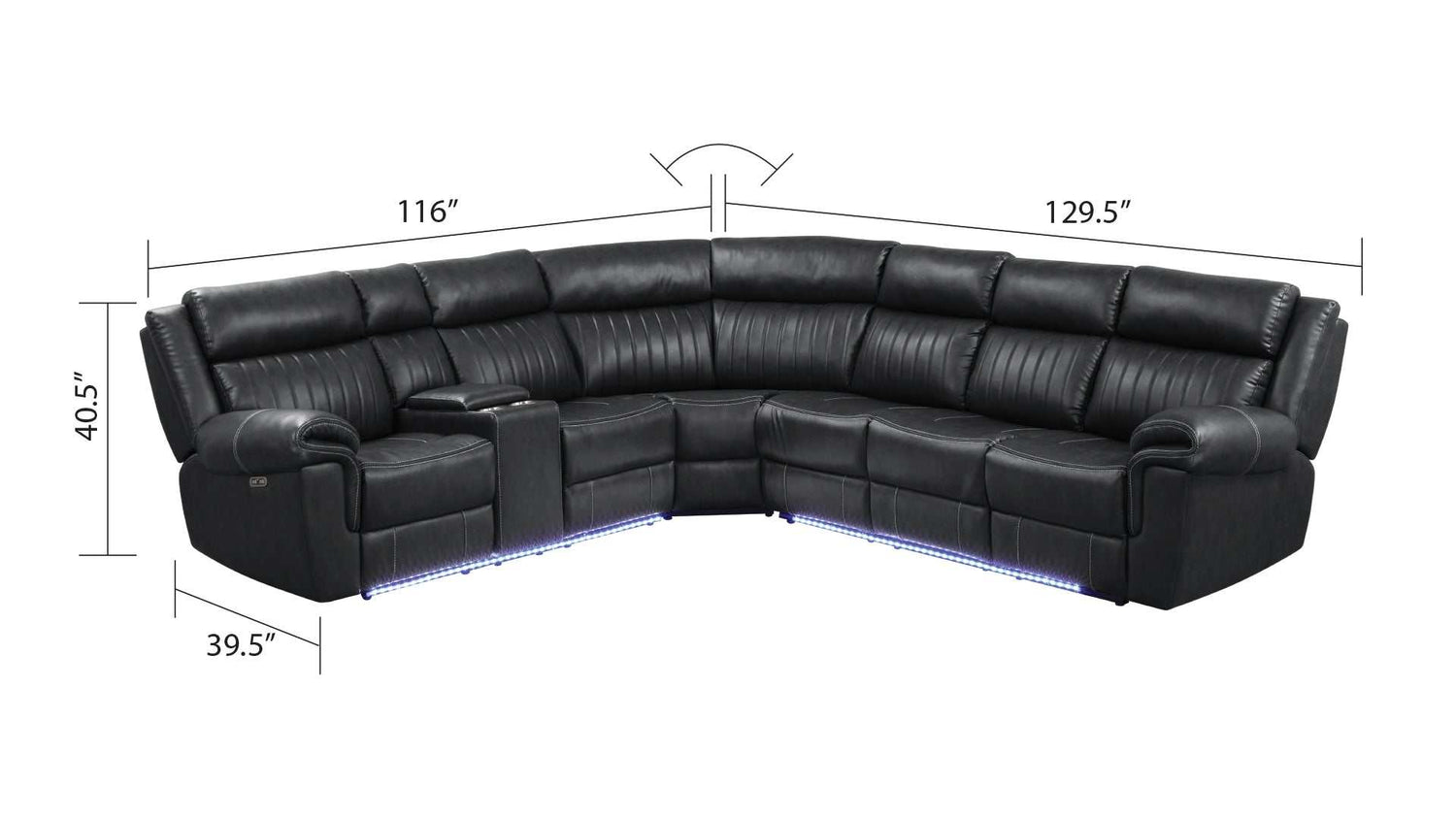 Aviator Black Leather Power Reclining Sectional w/ Console & Drop-down Touchpad