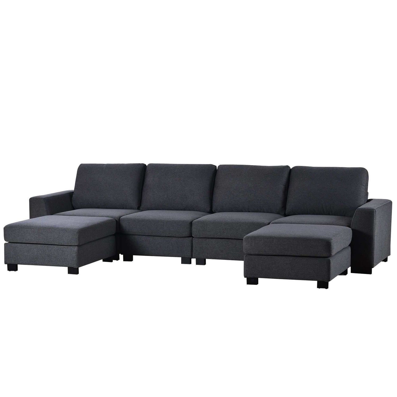 Create a welcoming gathering space in your living room or home office with our sleek U-shaped sofa. Crafted with precision from plywood and birch wood, it boasts sinuous spring construction, foam-filled cushions, and 100% polyester upholstery for both durability and comfort. This 131”W sofa features thickened cushion backs and wide square arms, offering a perfect balance of support and style.