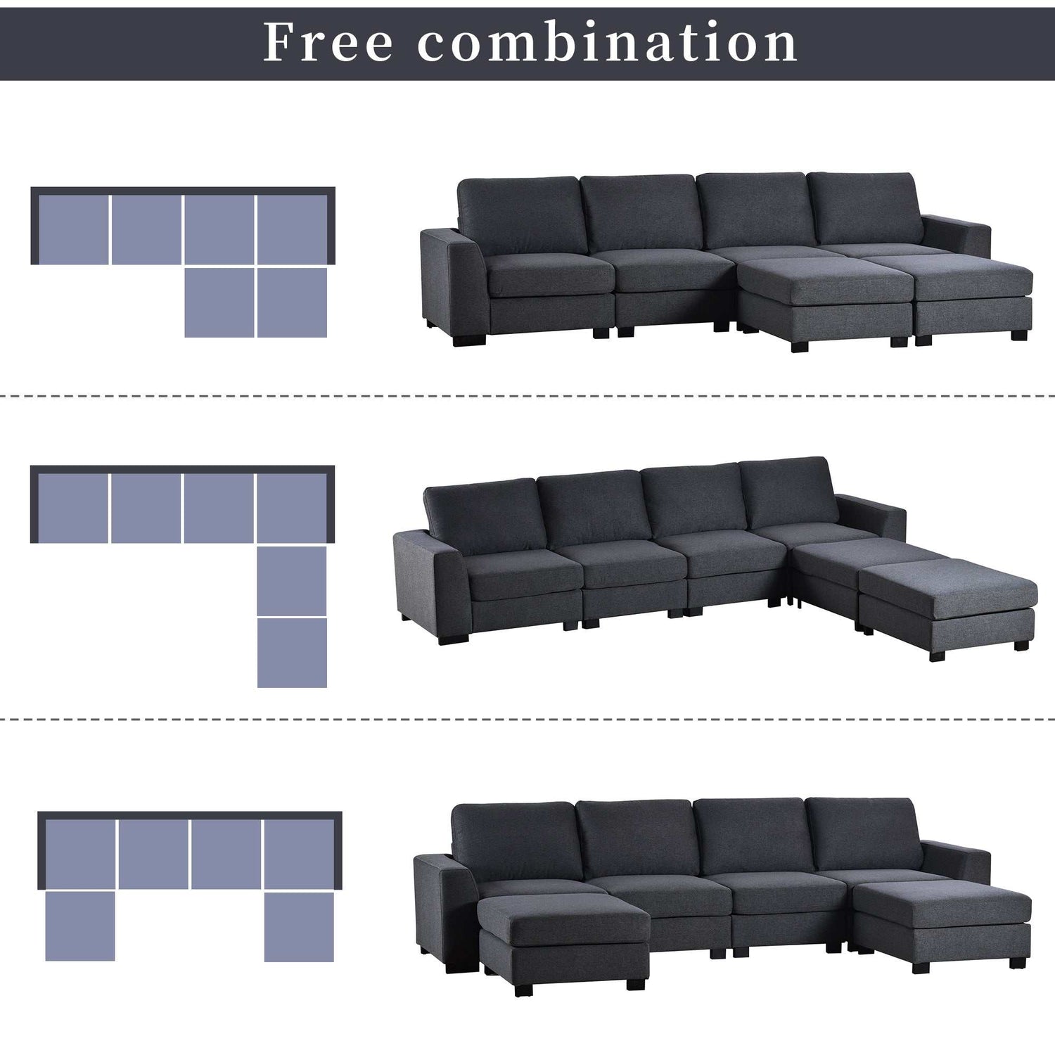The sofa's versatile design allows you to arrange it in various configurations. It comes with two chaises, each equipped with a removable ottoman, providing the flexibility to customize your seating to your liking. Whether you prefer a left or right facing layout or both chaises on one side, this sofa adapts effortlessly to your needs.