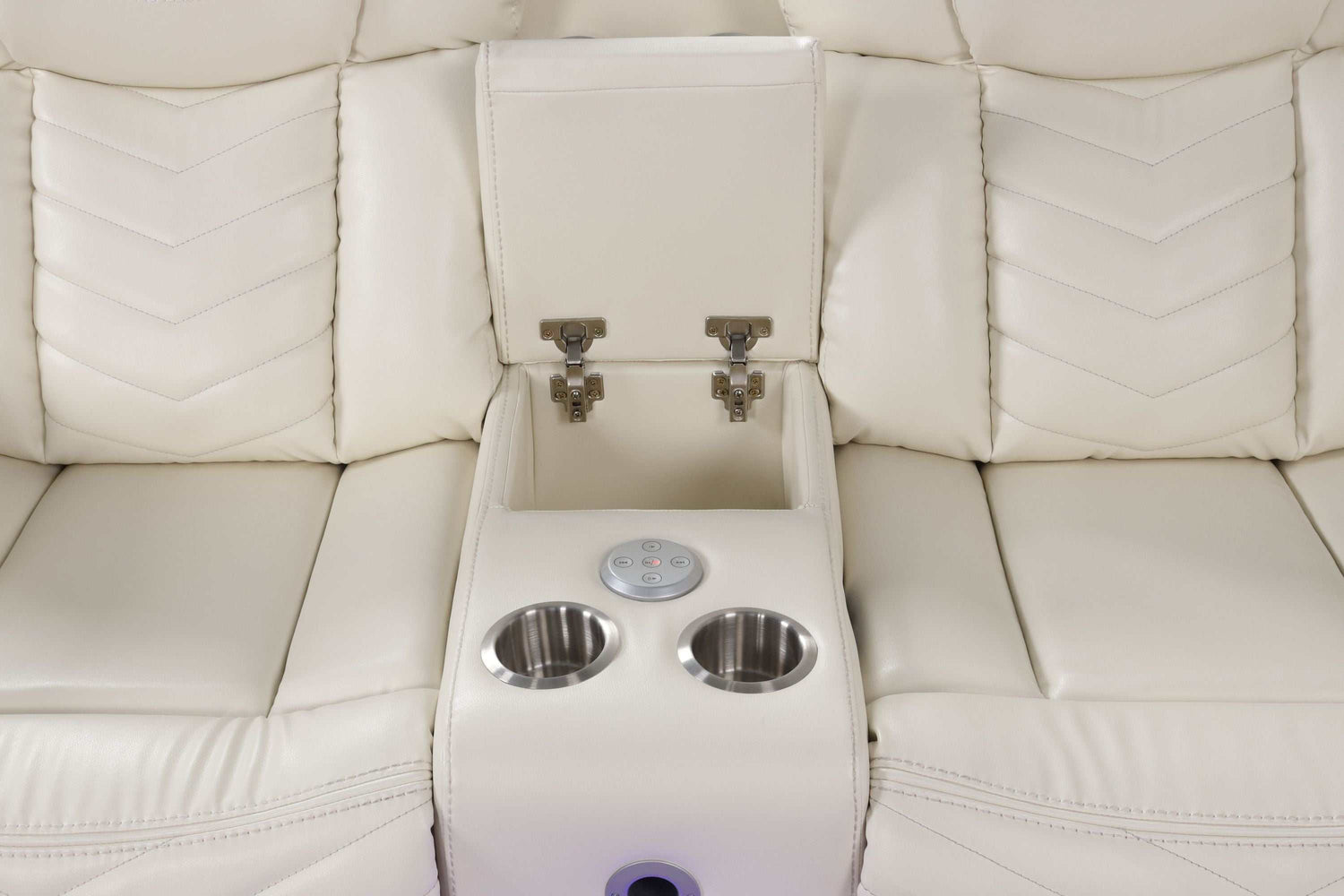 Challenger Beige Faux Leather Reclining Sectional Sofa w/ Built in USB-C Ports & Bluetooth