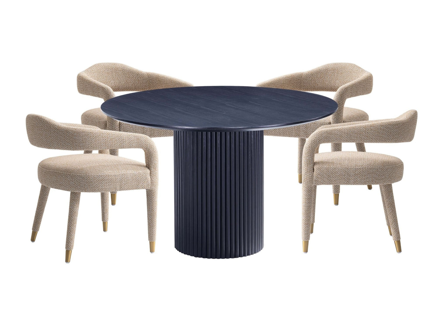 5-Piece Hathaway 47.24 Round Dining Set in Black with 4 Aspen Dining Chairs in Gold Dust