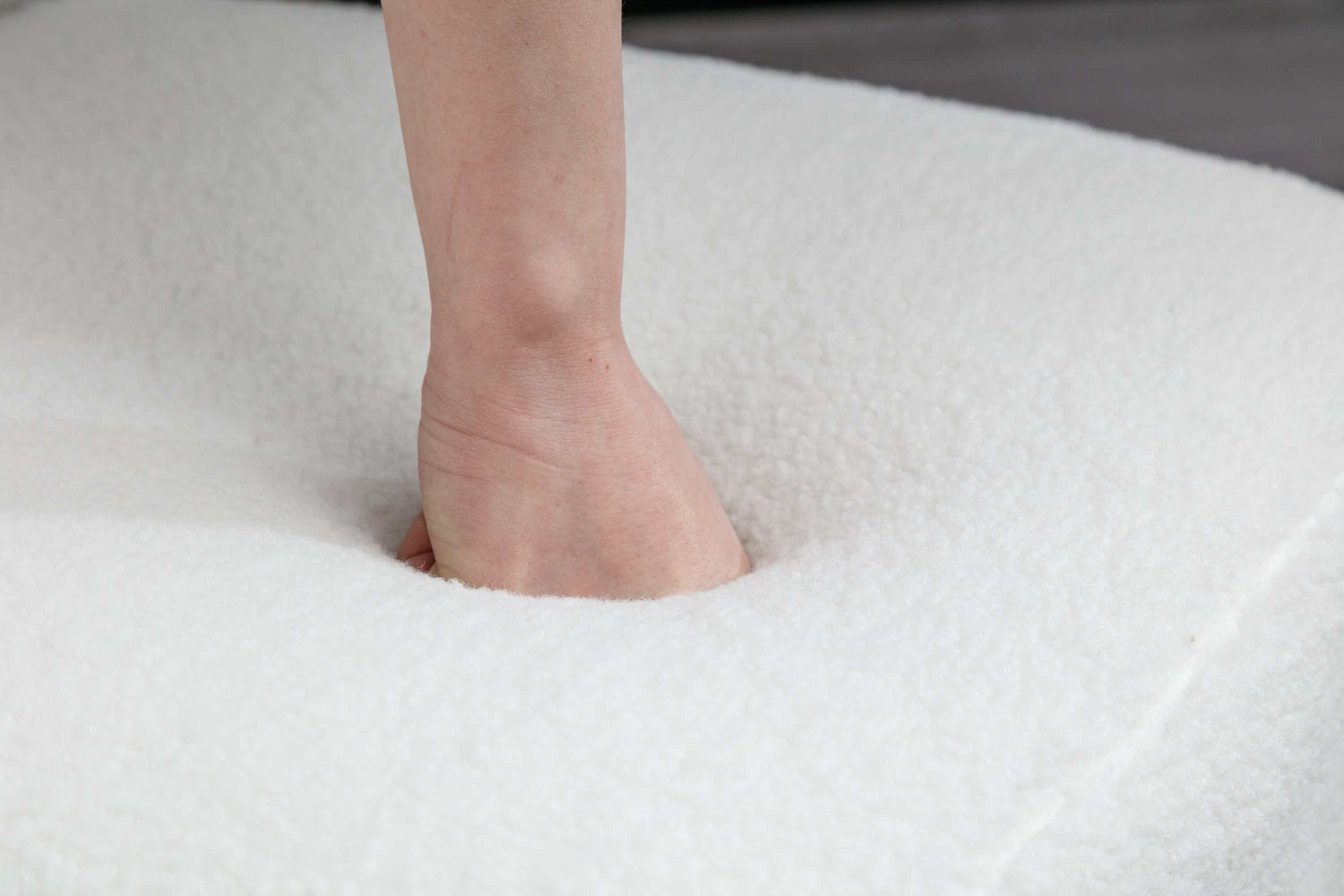 - Plush white teddy fabric upholstery for a cozy and inviting ambiance