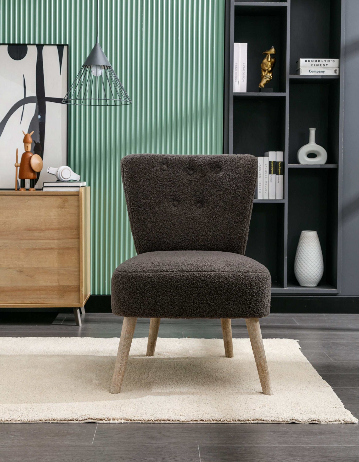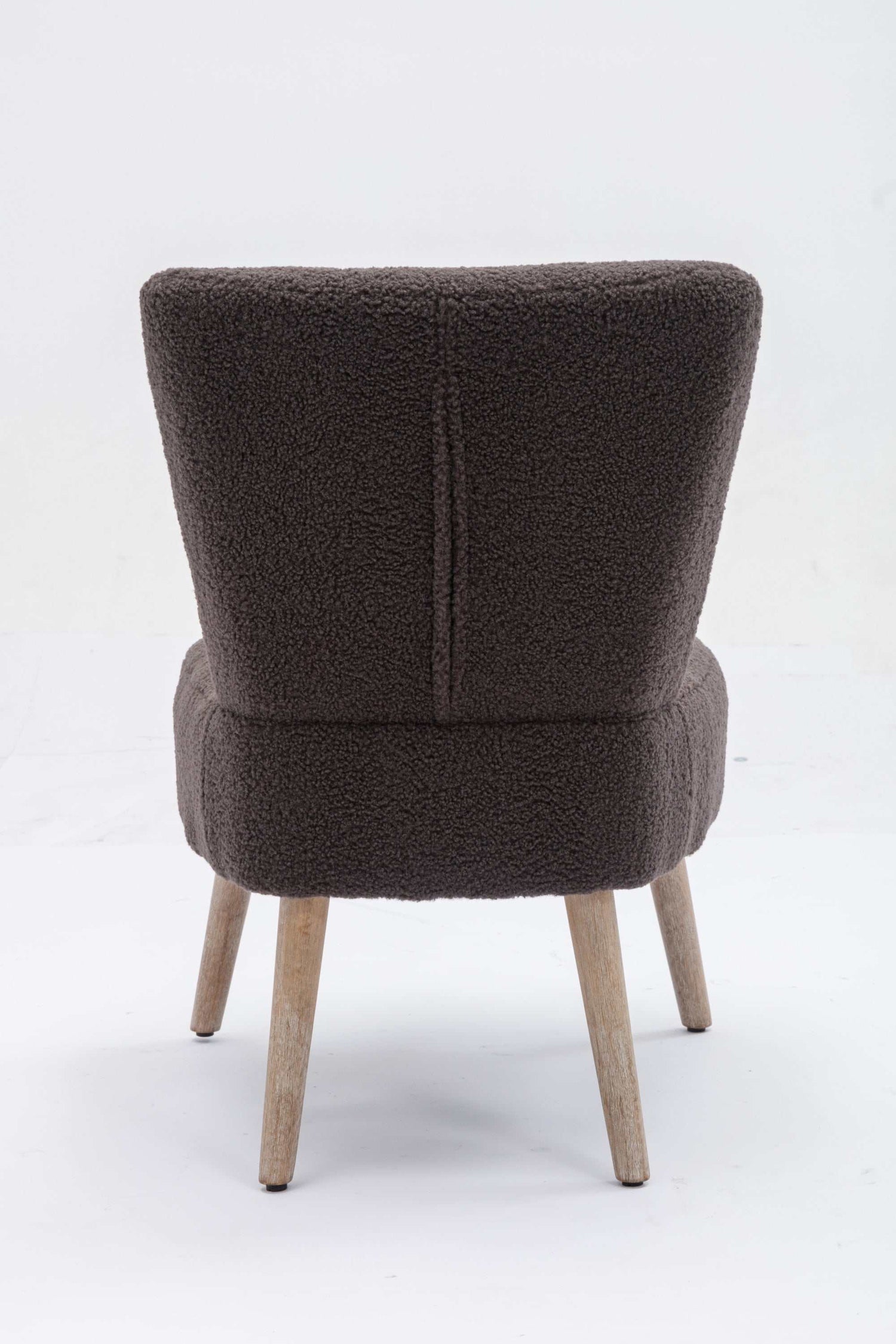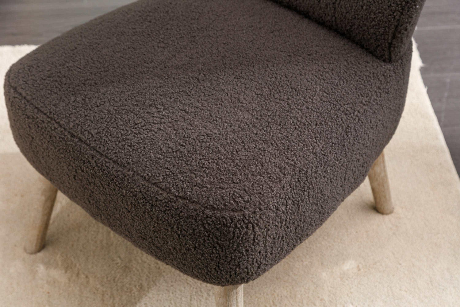 Elevate your dining room, living room, or bedroom with our inviting Teddy Fabric Slipper Chair. The sophisticated dark gray teddy fabric upholstery provides a comfortable and inviting feel, making it an ideal choice for relaxation. The button tufting adds a touch of refinement, while the wooden legs offer a sturdy and stylish base. This slipper chair is designed to complement a wide range of settings, from dining rooms to living rooms and bedrooms.