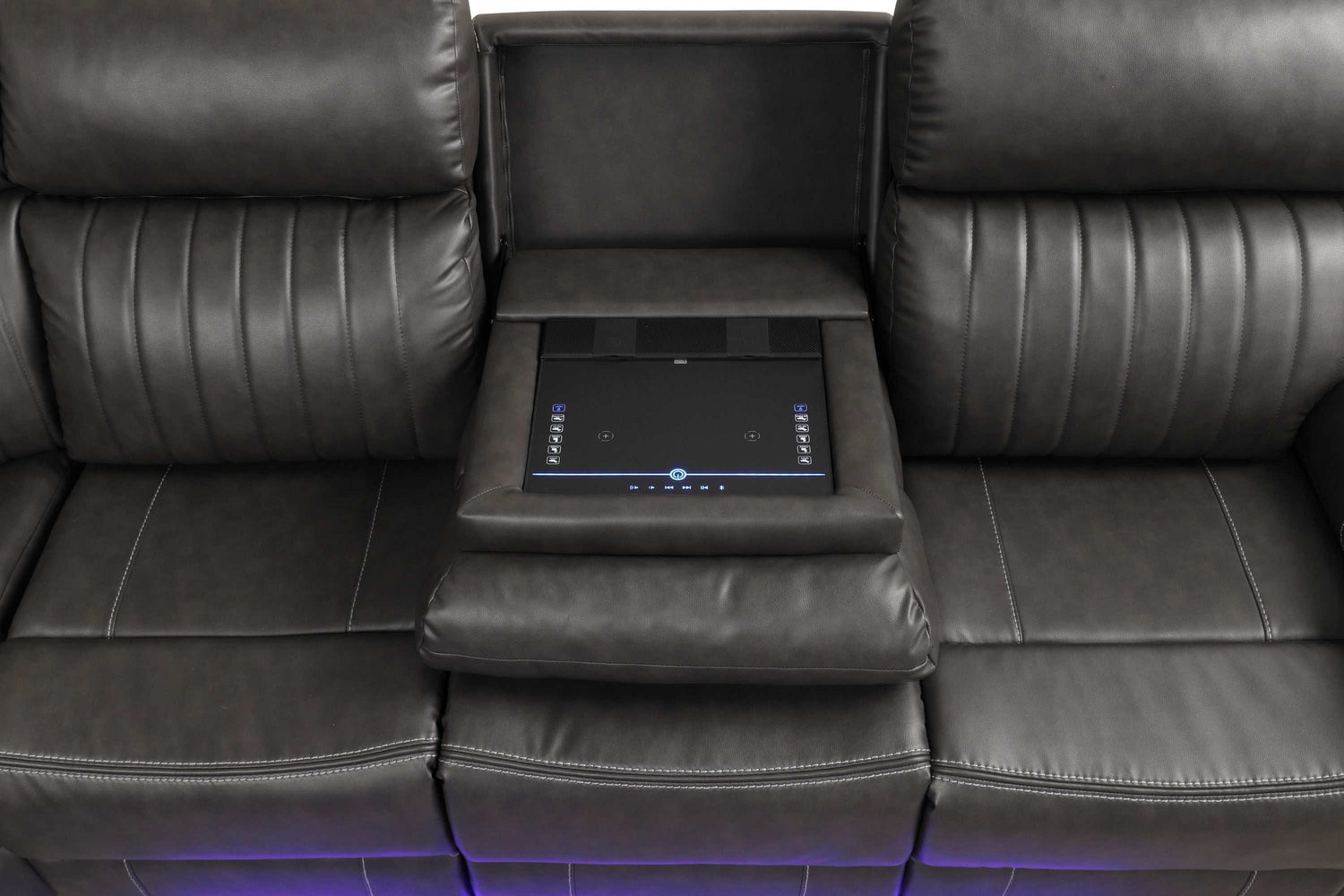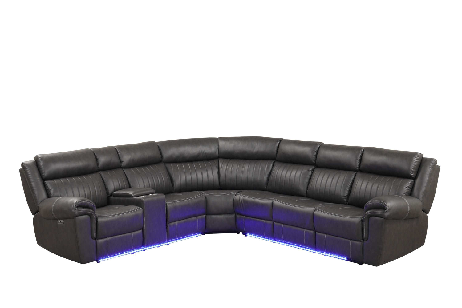 Aviator Gray Leather Power Reclining Sectional w/ Console & Drop-down Touchpad