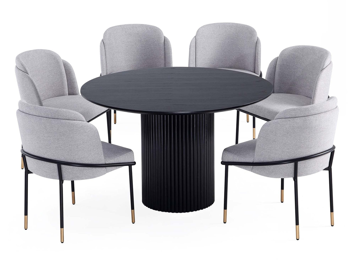 - Item Name: 7-Piece Hathaway 59.05 Round Dining Set in Black with 6 Flor Dining Chairs in Grey