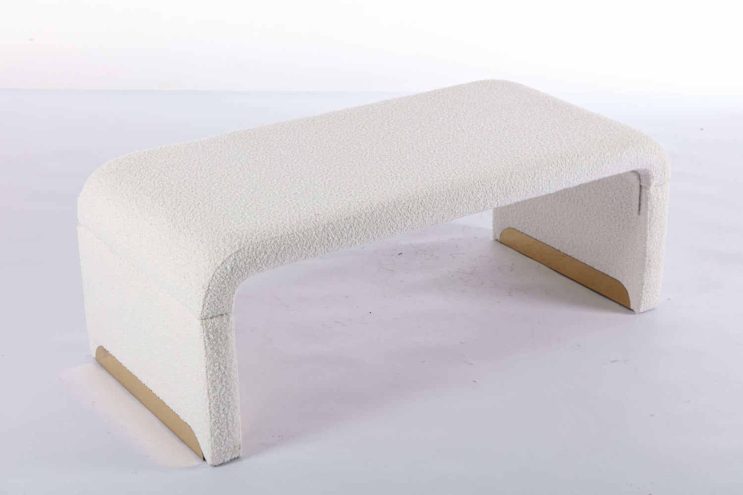 The plush boucle fabric provides a soft and inviting texture, while the gold metal legs add a touch of opulence. This piece serves multiple functions - use it as a loveseat for cozy seating, an ottoman for added comfort, or as a stylish footstool. Its versatility makes it the perfect addition to any bedroom. Gold Metal Legs.Indoor,Bedroom Bench,Shoes Bench,Out of the door and so on.Spot wipe clean with a soft, dry cloth..