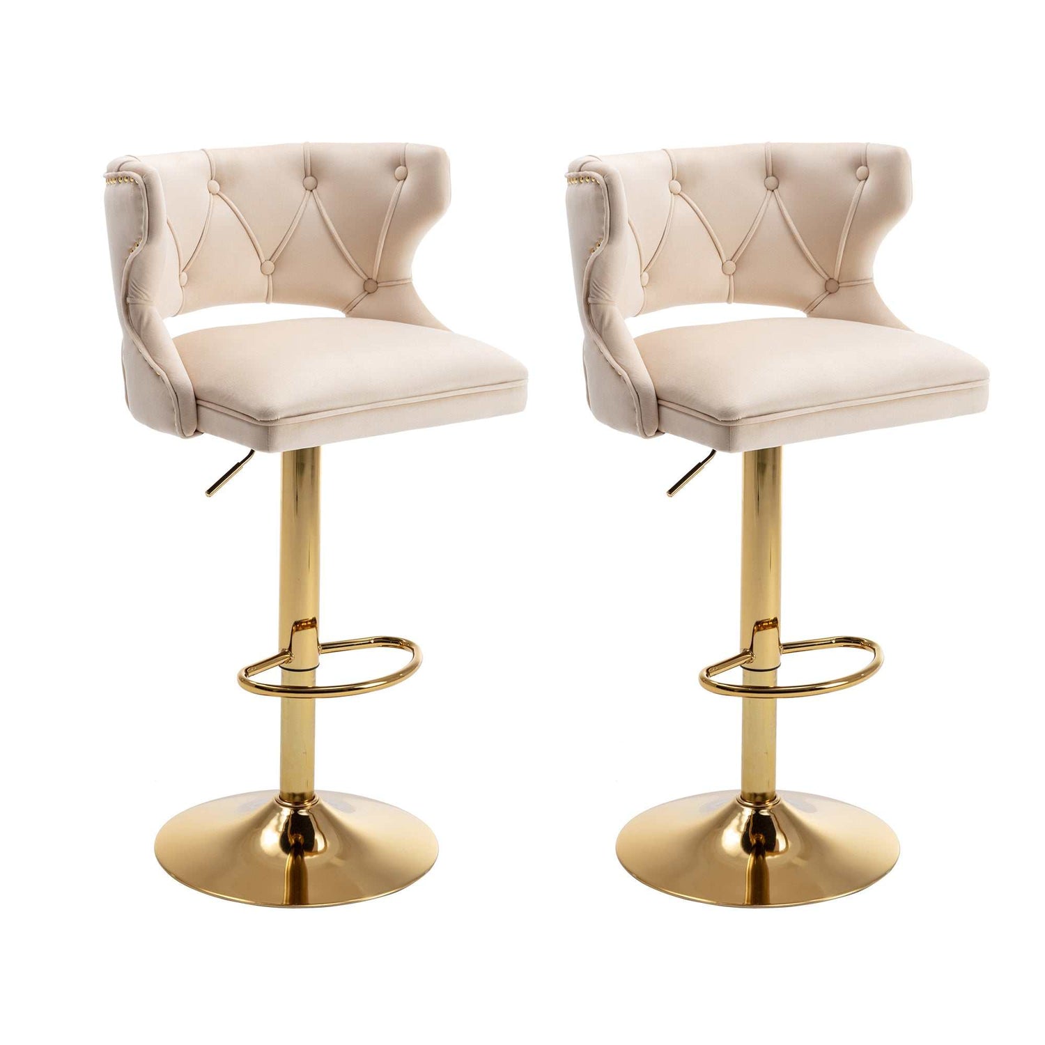 Ano Bar Stools With Back and Footrest Counter Height Dining Chairs-Velvet Beige-2PCS/SET