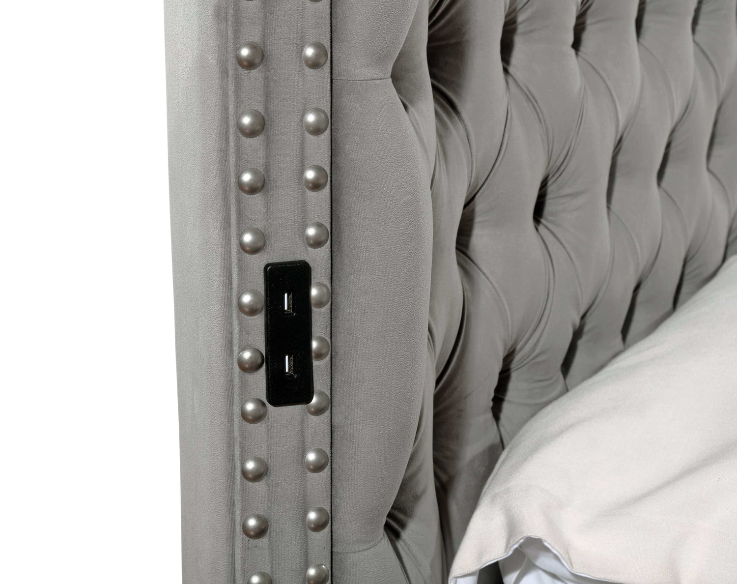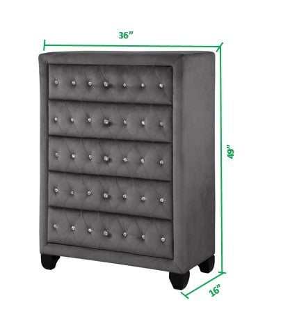 Hazel Gray Tufted Velvet King Vanity Bedroom Set / 5pc