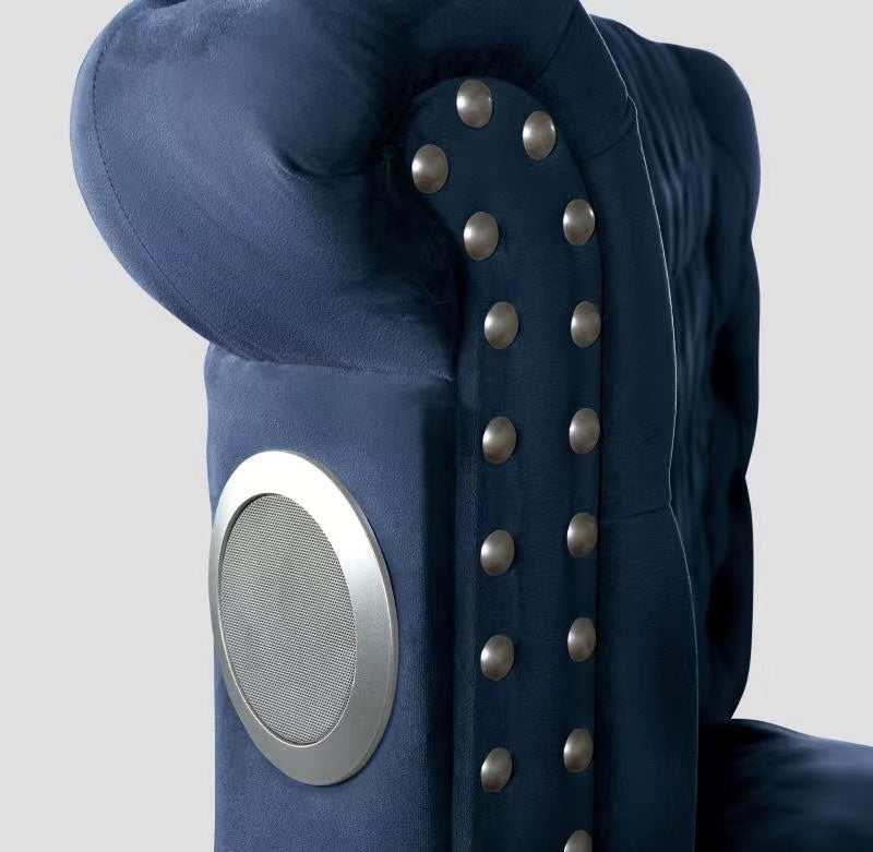 Hazel Blue Tufted Velvet Queen Bedroom Set / 4pc