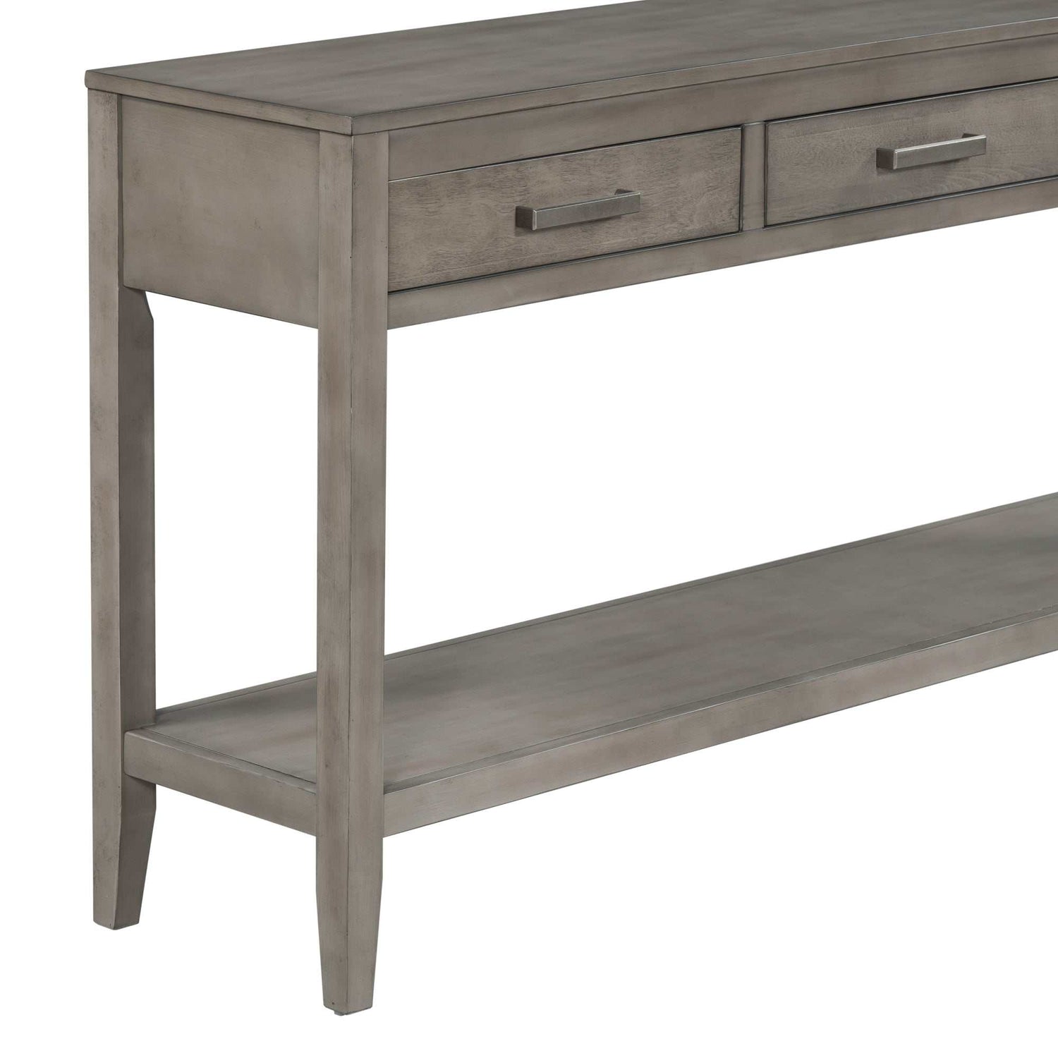 Elevate your entryway, hallway, living room, foyer, or corridor with this sleek and functional console table. Featuring three spacious drawers and a convenient shelf, this piece provides ample storage space for your essentials while adding a touch of modern style to your space.