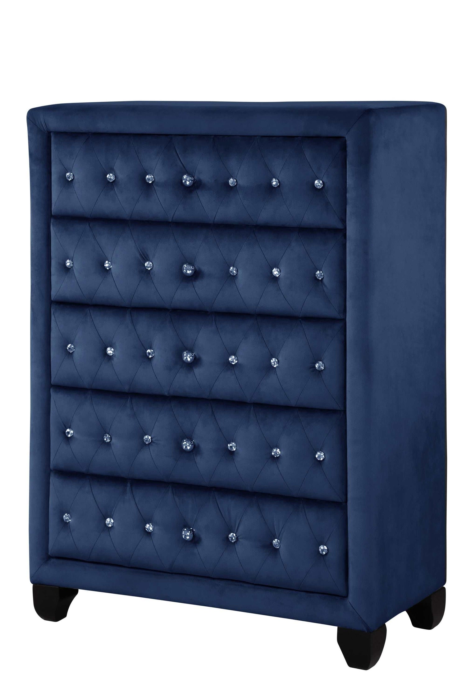 Hazel Blue Tufted Velvet Queen Vanity Bedroom Set / 5pc