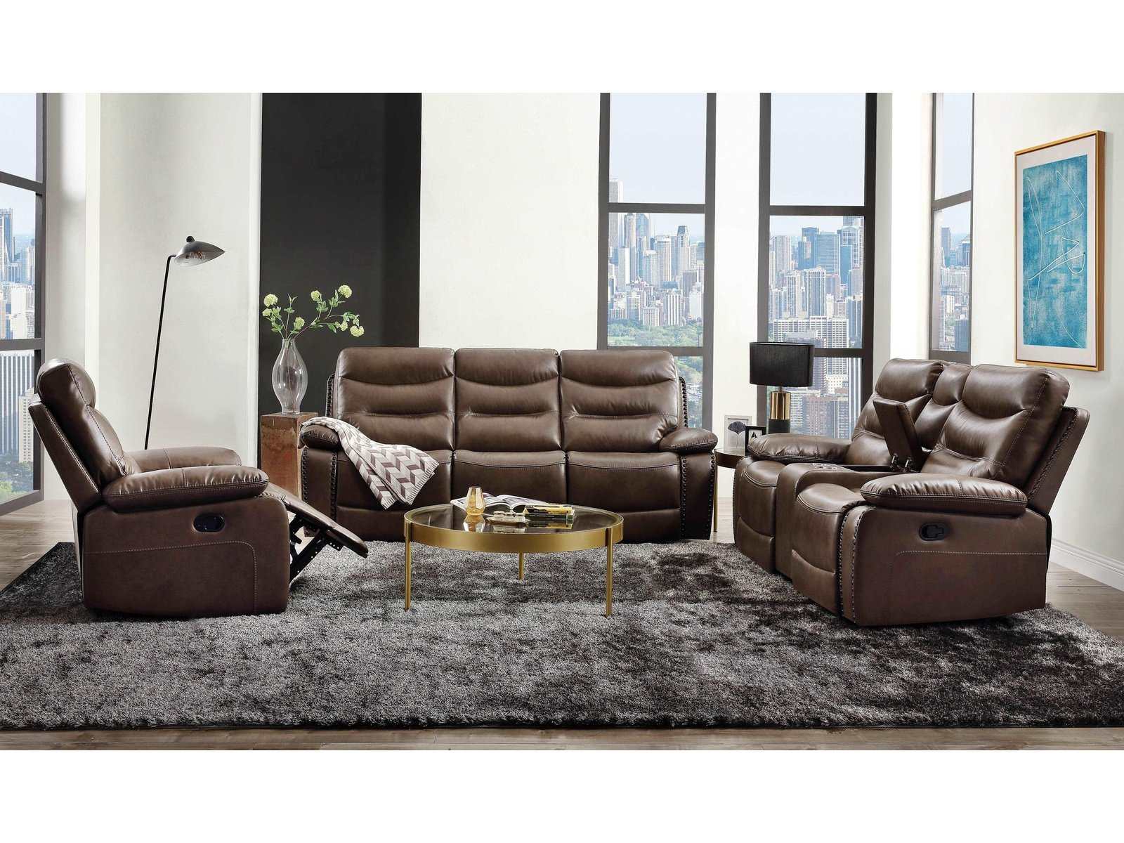 Aashi Brown Leather Gel Match Sofa (Motion)