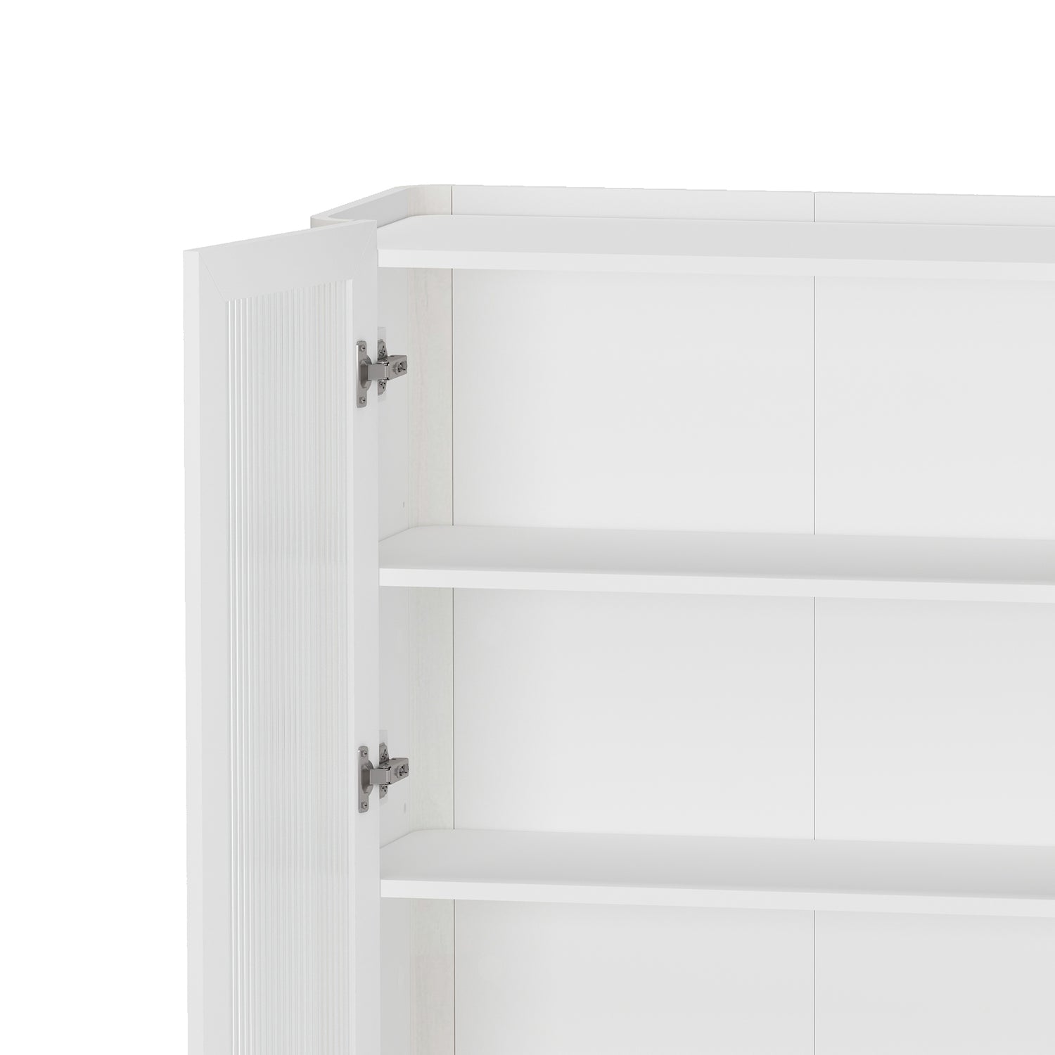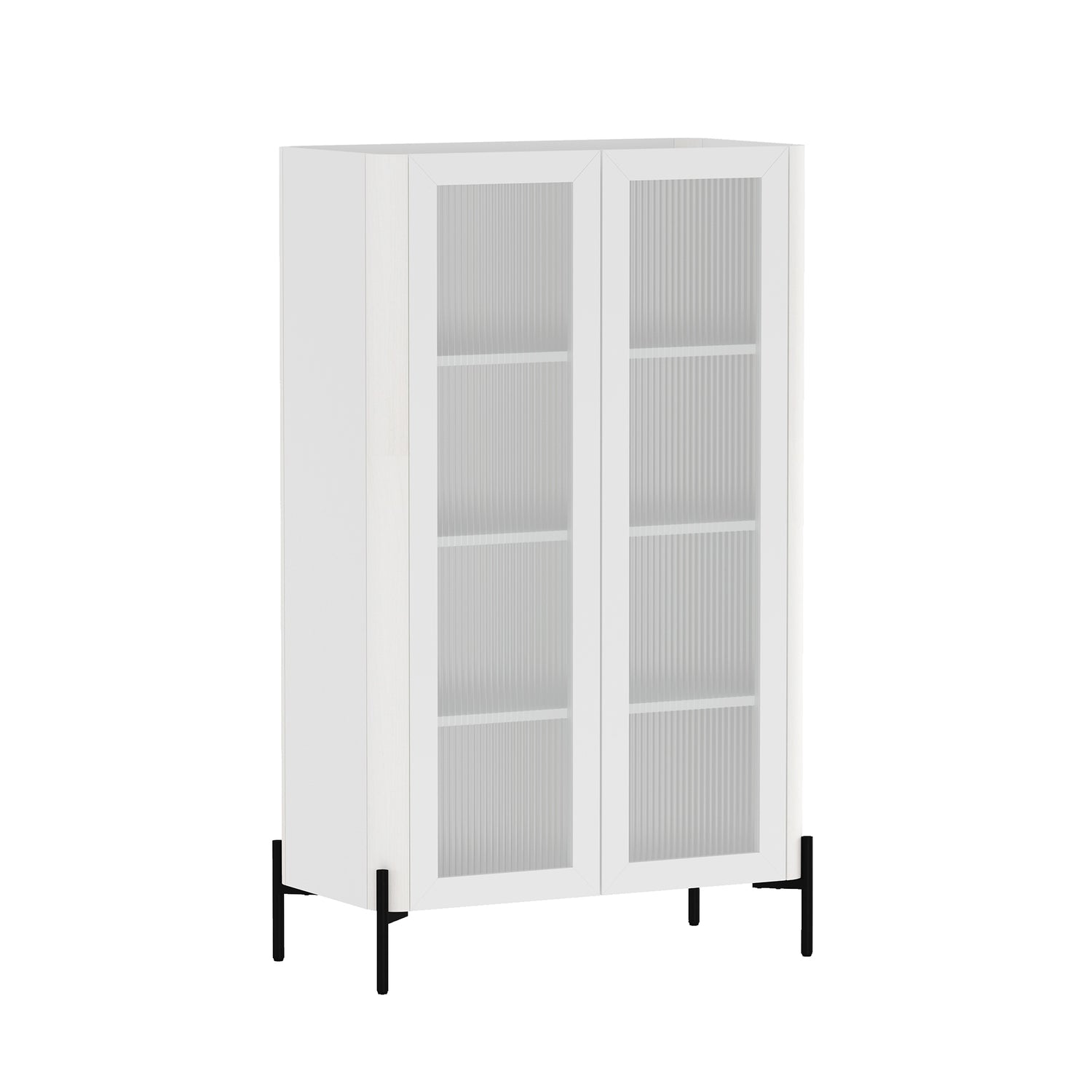 - Includes 2 Ribbed Tempered Glass Soft Close Doors with 4 Adjustable Shelf Spaces.