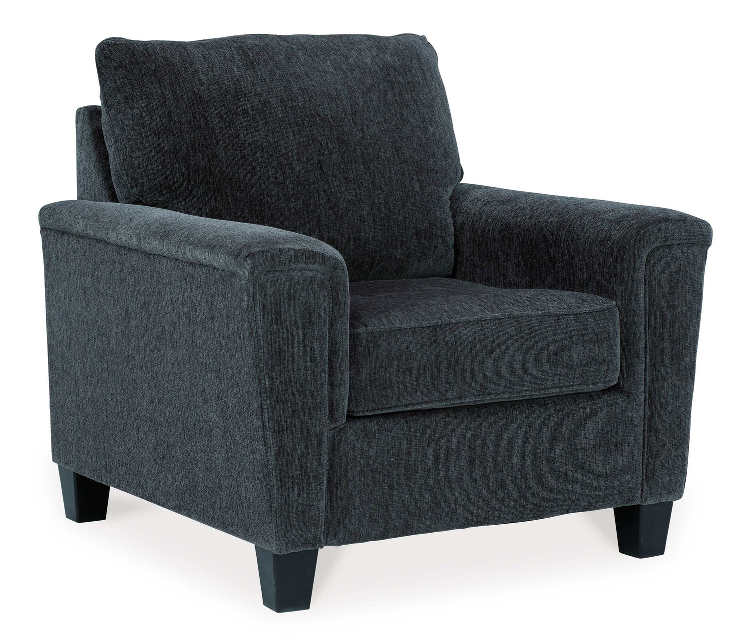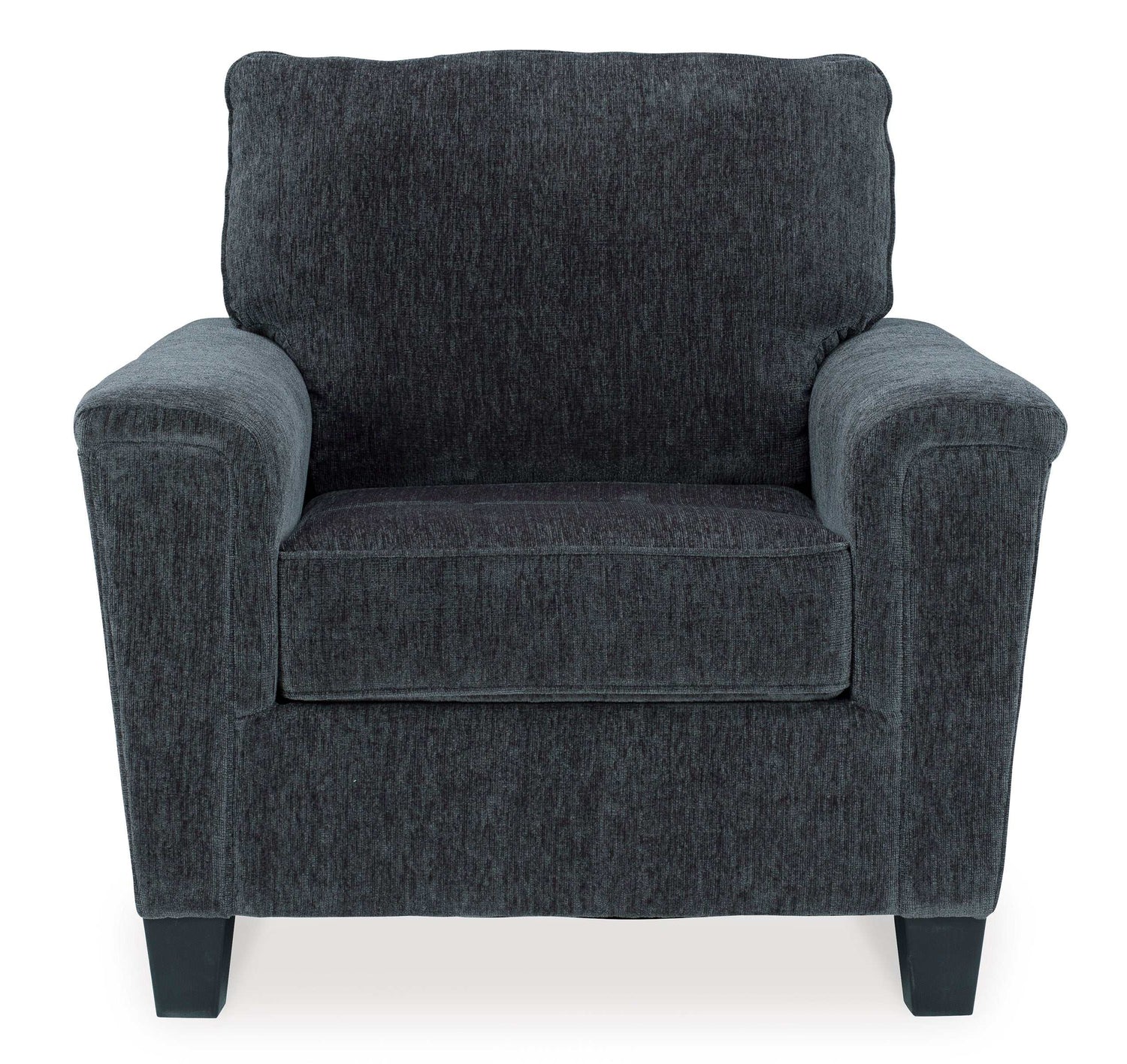 If you’re looking to lighten the mood, you’re sure to find this space-conscious, budget-conscious 2-piece chair and ottoman set, a breath of fresh air. Covered in a smoke gray chenille upholstery loaded with plush texture, this less-is-more contemporary chair and ottoman set is dressed to impress with angled side profiling and track armrests wrapped with a layer of softness for that little something extra. Talk about one sensational look.