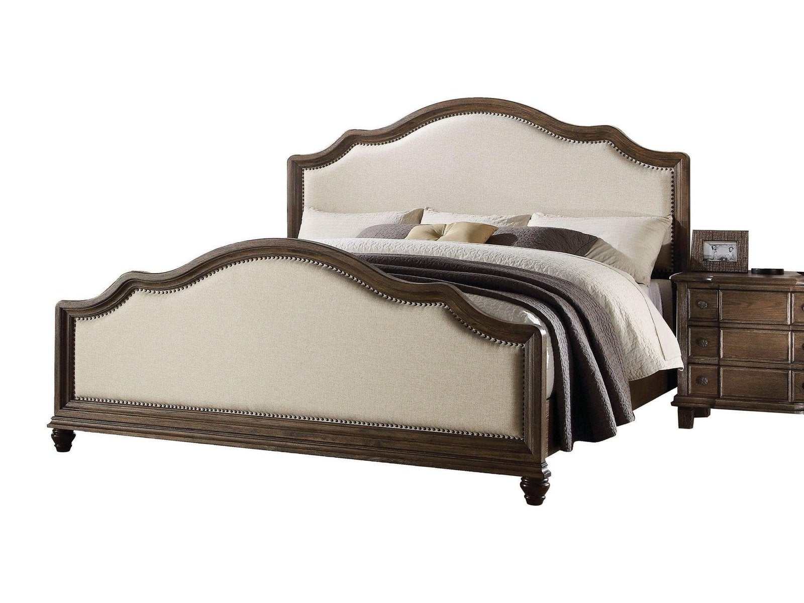 Baudouin Beige Linen & Weathered Oak Queen Bed Frame