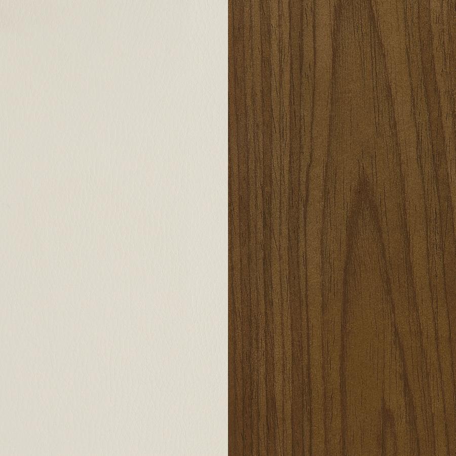 - Enjoy a lush palette with ecru leatherette upholstery and walnut and chrome trim