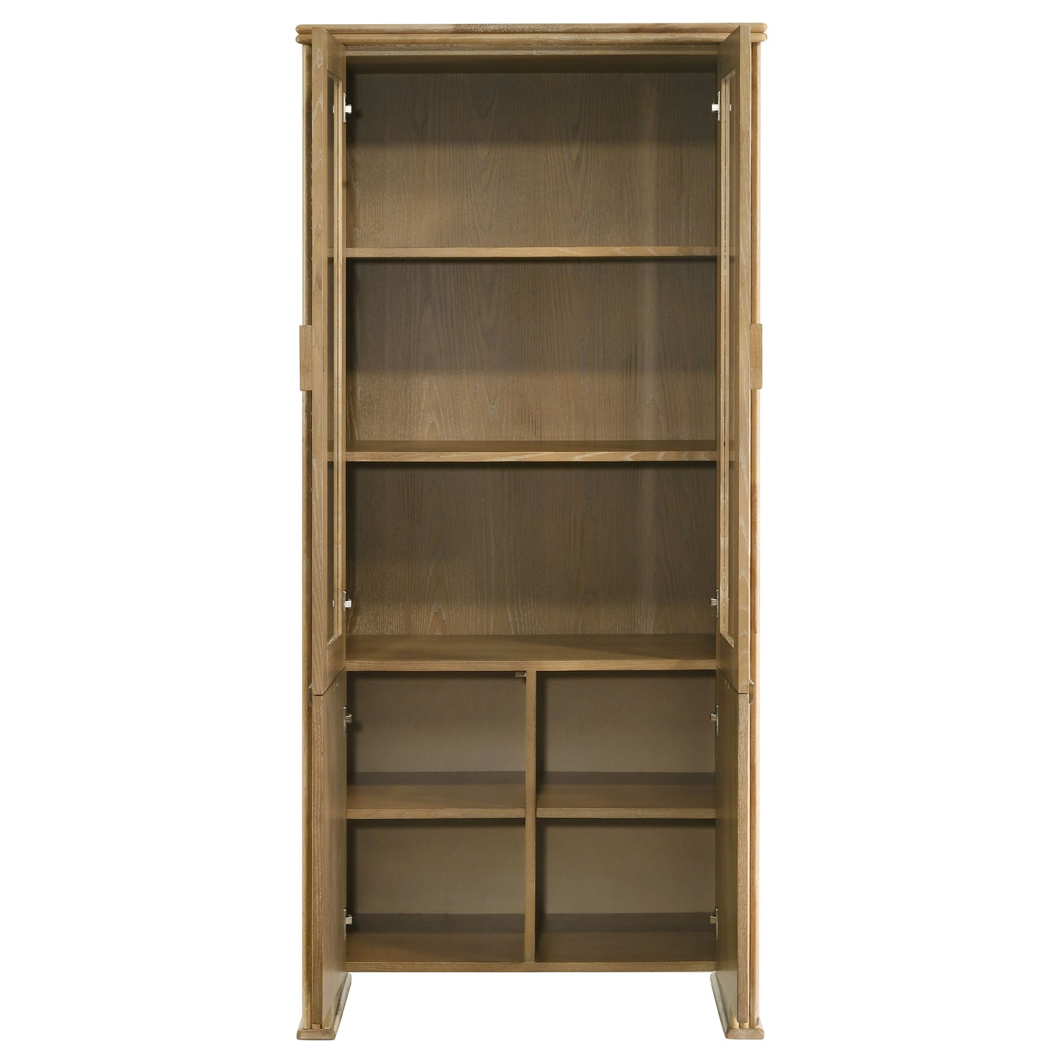 This tall display cabinet is suitable for dining rooms, living rooms, or entryways. Its transitional style complements a range of decor, from traditional to contemporary spaces. Use it for displaying collectibles, storing tableware, or organizing linens, adding both functionality and a focal point to your home.