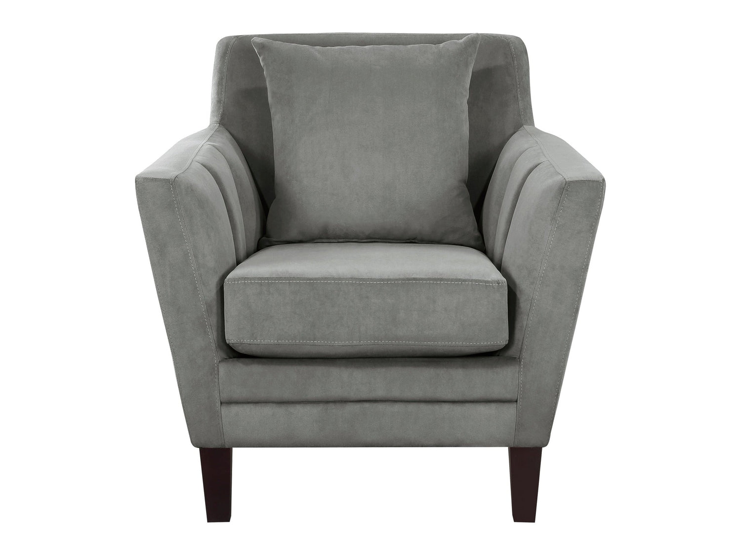 Framed to envelop, the Adore Collections surrounds you with style and comfort, creating a modern look with glamorous texture, perfect for your stylish home. The gray-hued velvet covered chair features vertically defined tufting, streamlined profile, and matching pillow.
