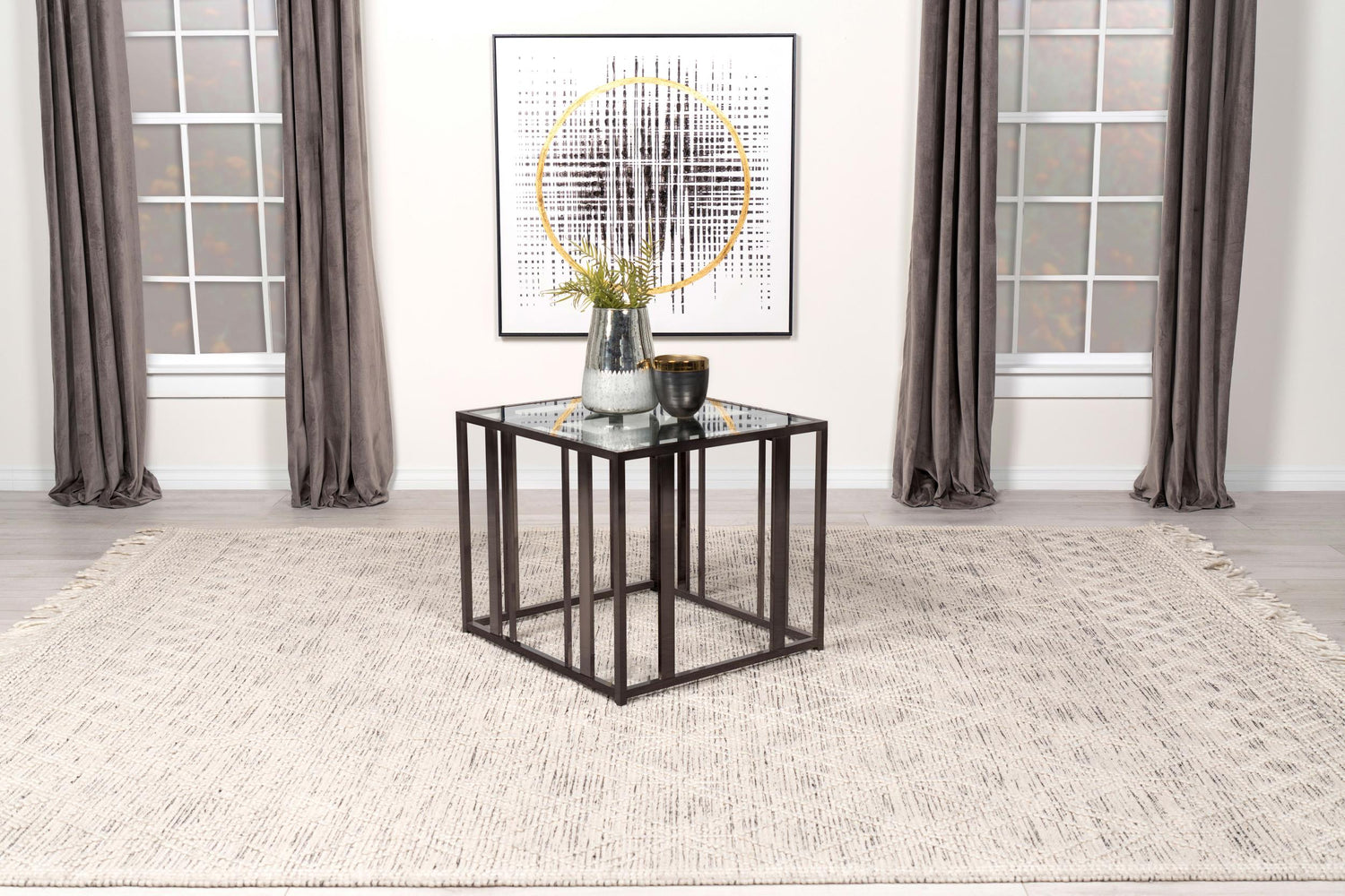 - Item Name: Adri Black Nickel Rectangular Glass Top Side End Table