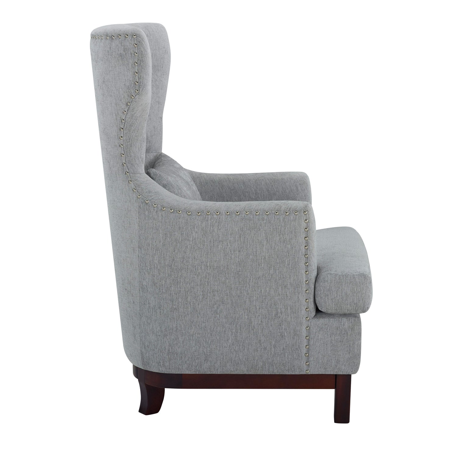 The visual and textural statement of the elegant Adriano Collection lends distinct accent to your home’s decor. Wing-backed, as a nod to traditional form, and covered in light gray fabric, the chair features nailhead accent and button-tufting further enhancing the tailored styling.