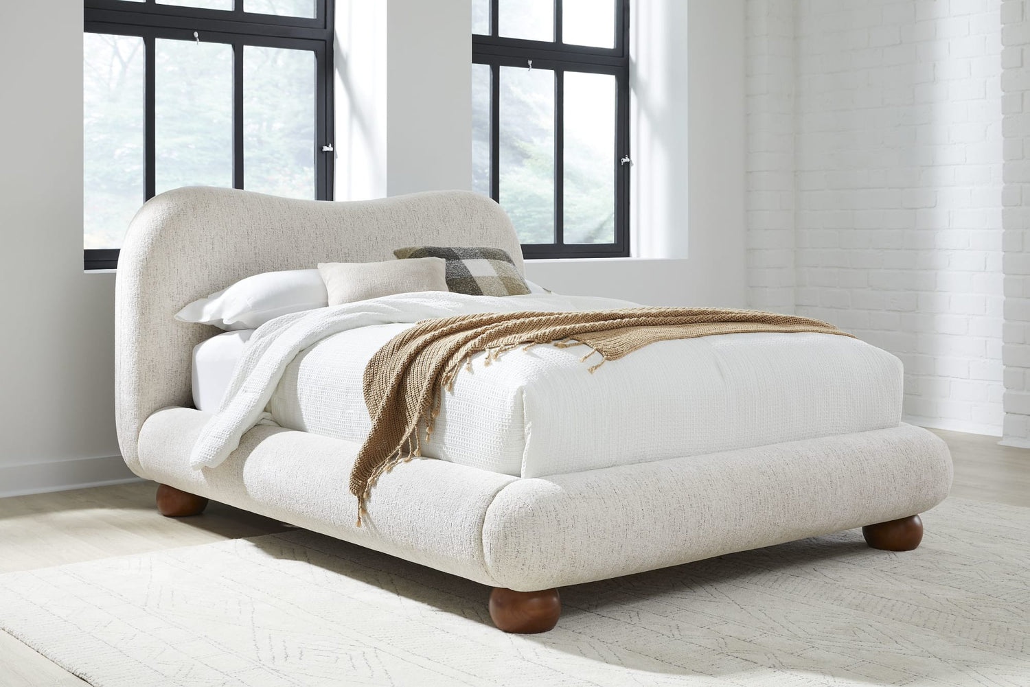 Afra Chinchilla California King Chenille Upholstered Wood Leg Platform Bed