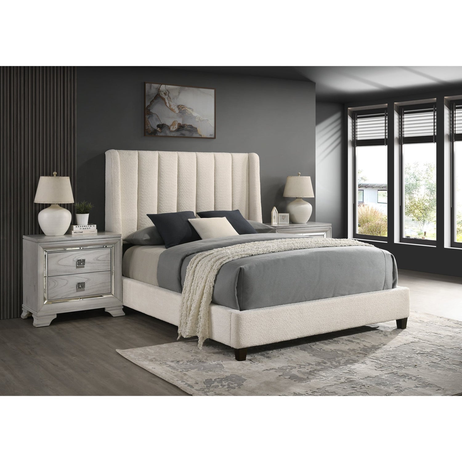 Agnes White Boucle Queen Bed