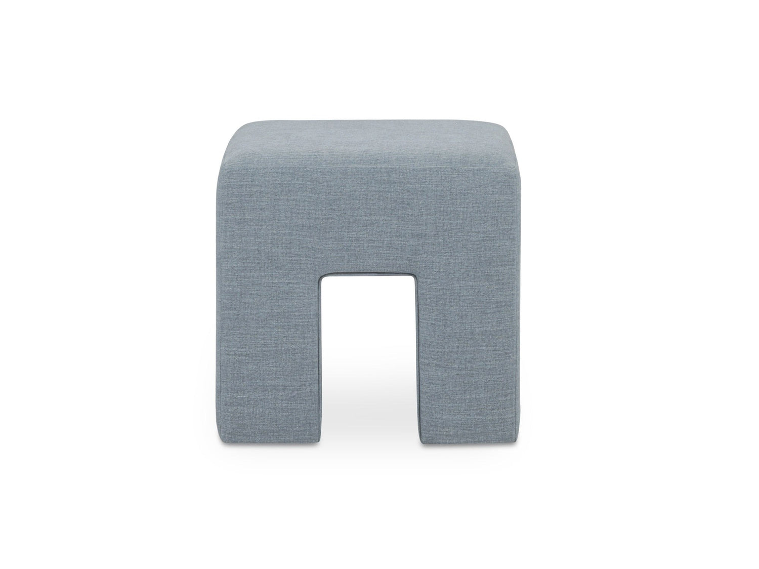 - Light blue fabric: Linen-polyester upholstery in a soft blue tone, textured with subtle wrinkling for an easy, breezy finish.