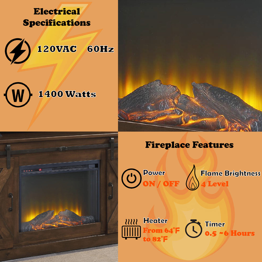 Aksel Walnut Entertainment Center w/Fireplace