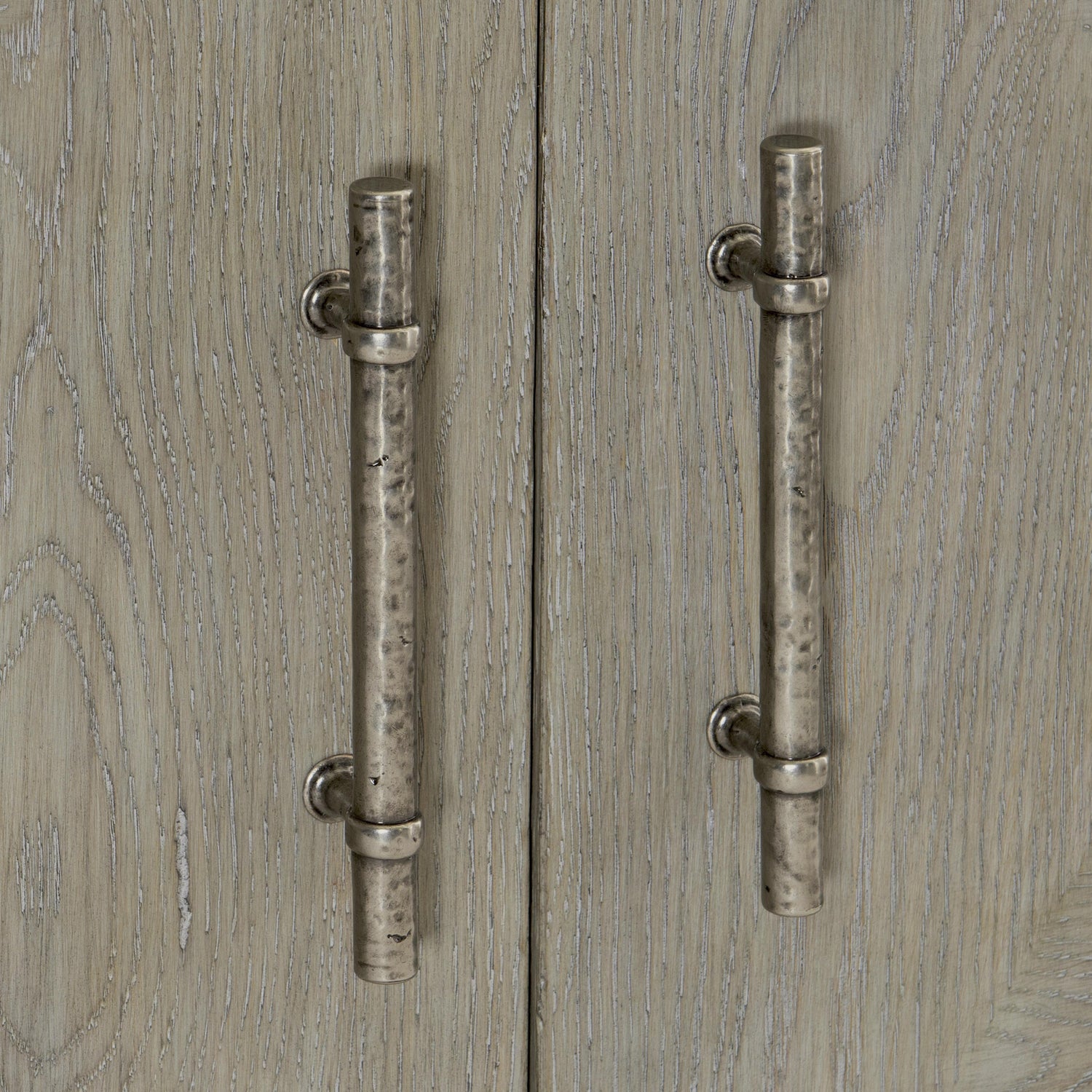 - Behind paired center doors is a top compartment with vents and covered grommet hole in back panel, and brown Guardian cloth silverware insert