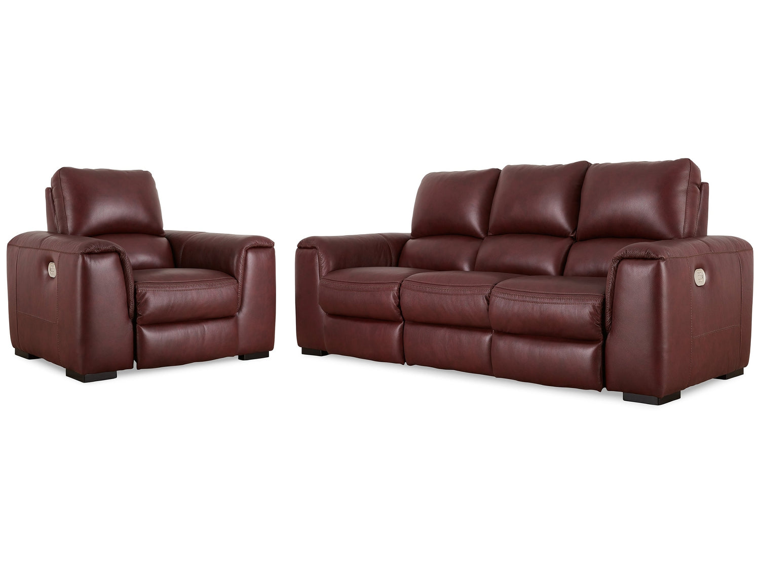Impressive in scale while keeping an air of refinement, this power reclining sofa and matching recliner stuns with soft, supple leather match upholstery in garnet. Sink into the seating area and cater to your comfort with one-touch power reclining and an adjustable headrest. Complete with USB charging, this sofa makes a surefire statement in your contemporary living room.