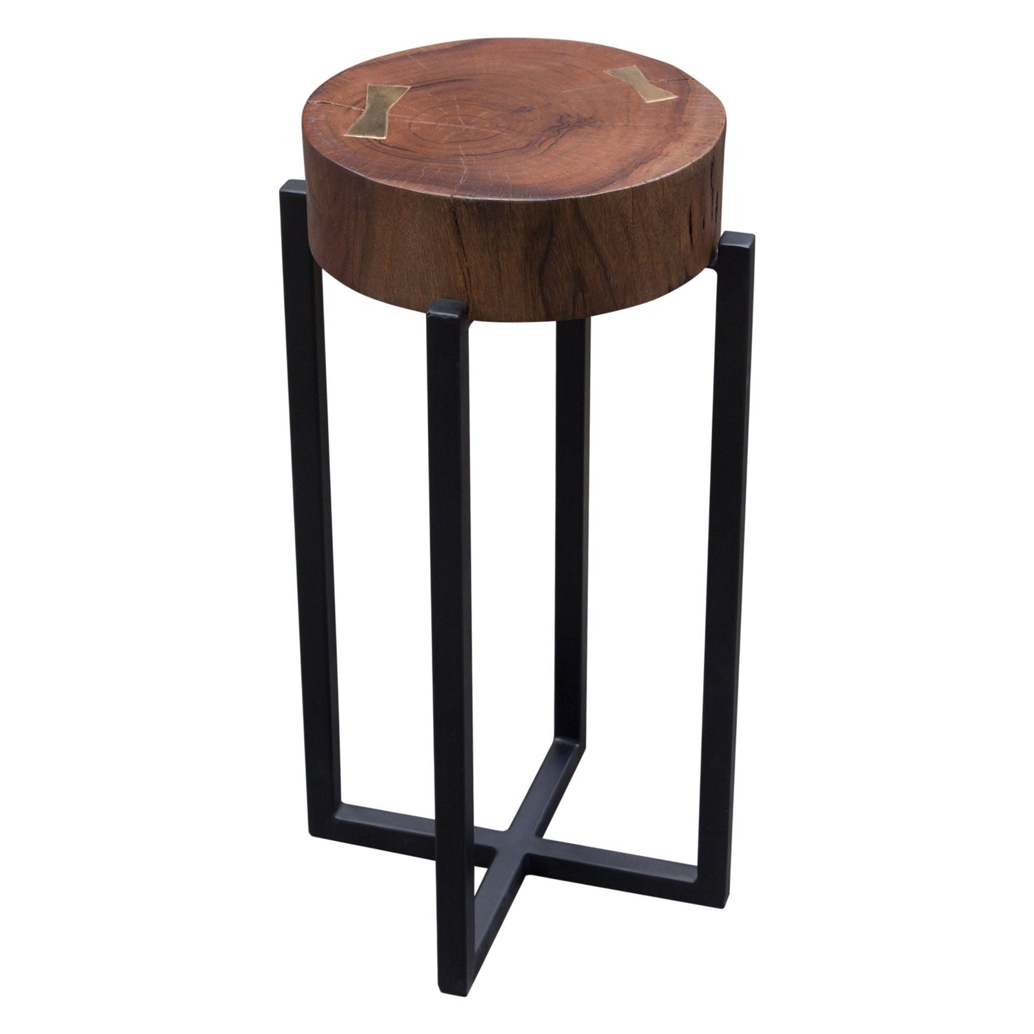 - Solid Acacia Wood Top in Walnut Finish w/ Gold Inlay Accent.