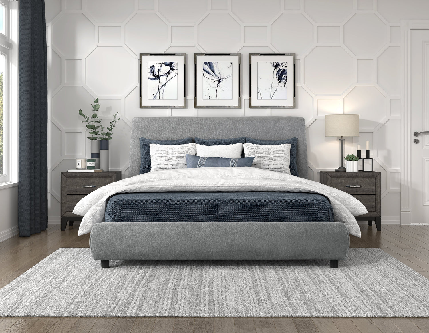 The Alford Collection’s design is comprised of unfettered lines and soft touch, creating an elegant addition for any modern bedroom. The unfettered profile of the Eastern King headboard’s profile solidifies the collection’s modern aesthetic. Chenille fabric upholstery covers the ultra-low platform bed’s headboard, footboard, and rails.