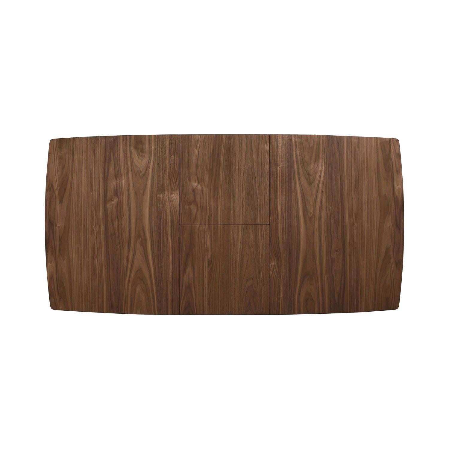 Mid-century modern-inspired, this five piece dining set welcomes a hint of retro pizzazz. In a natural walnut hue, the sleek table is given depth by an exposed wood grain. Tapered legs create an elegant and open look, elevated with clean style. The four included side chairs feature an armless silhouette and grey upholstered seat. The delicate cushion and streamlined back look mod and stylish.