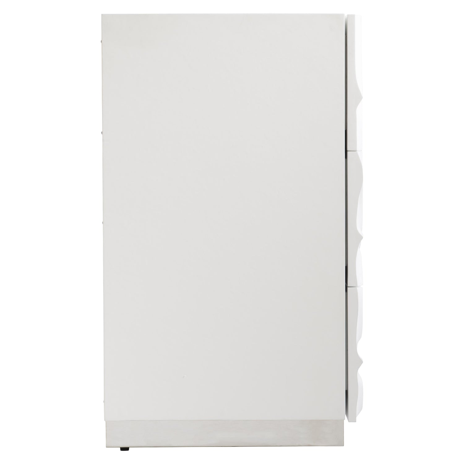 - Carved resin fronts on six push-to-open, soft-close drawers