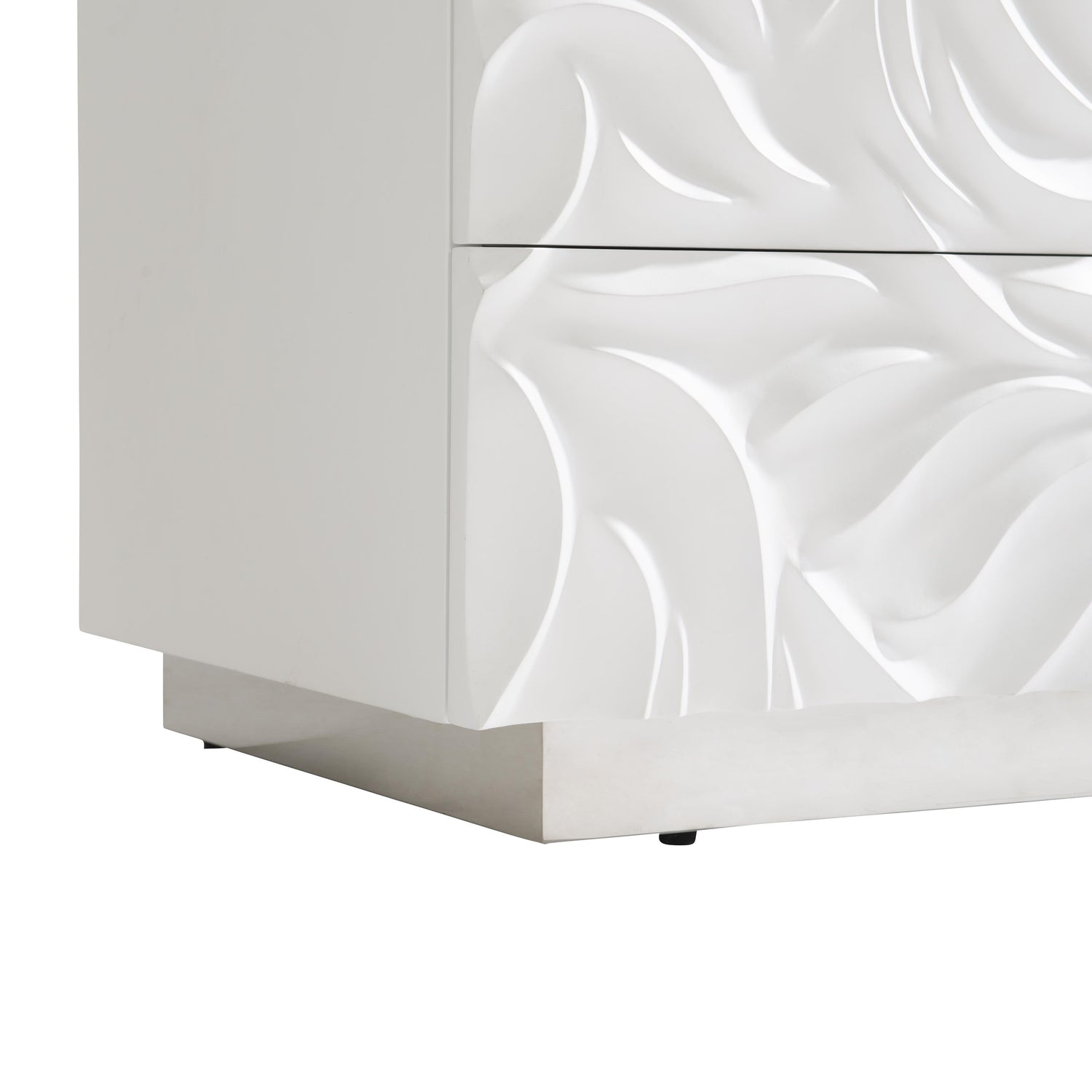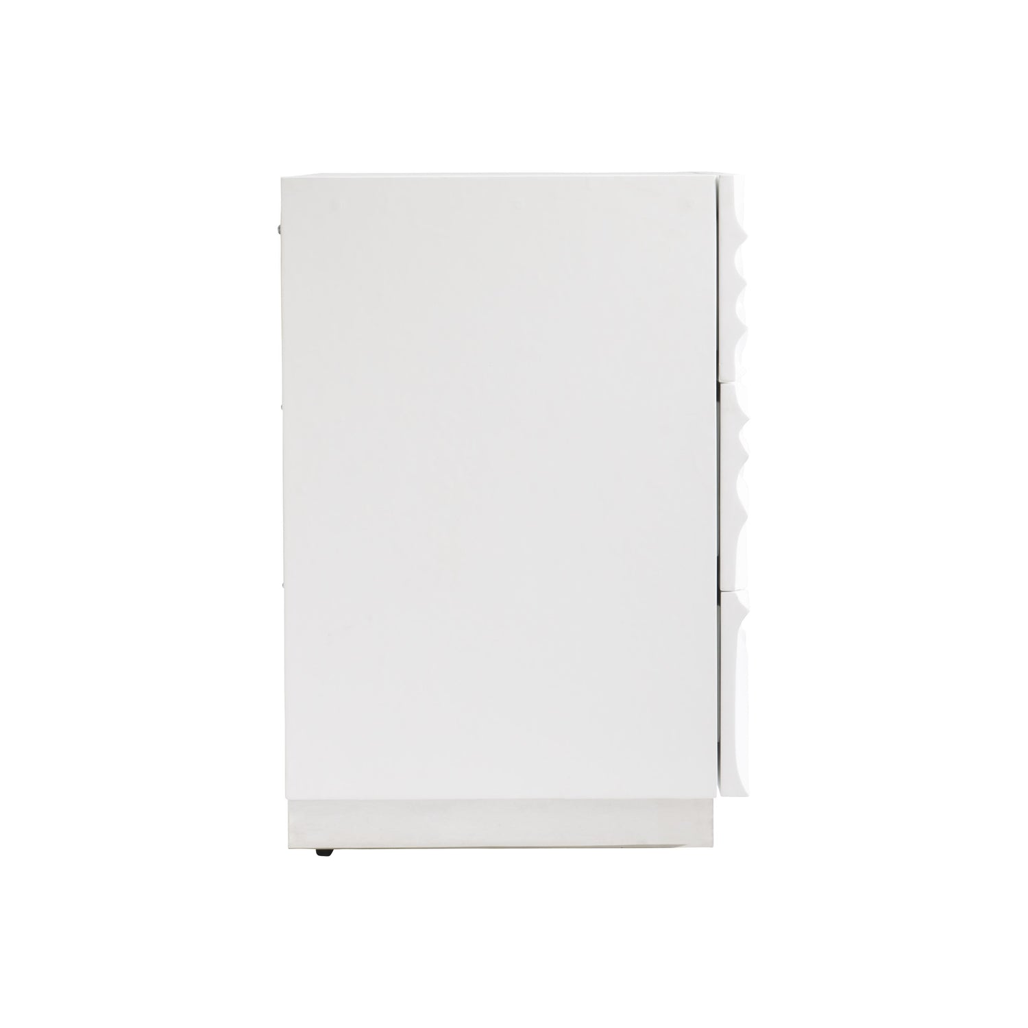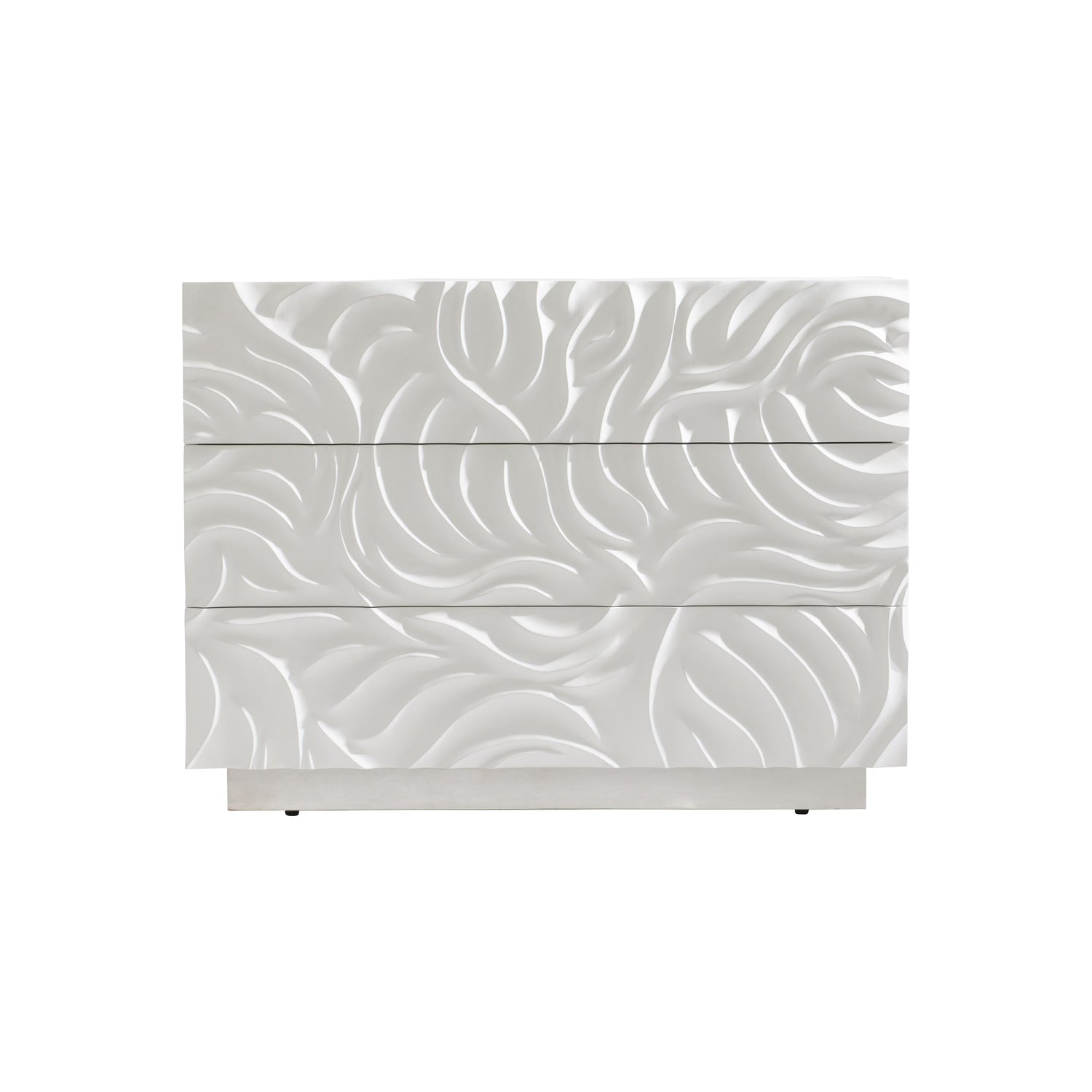 - Carved resin fronts on three push-to-open, soft-close drawers