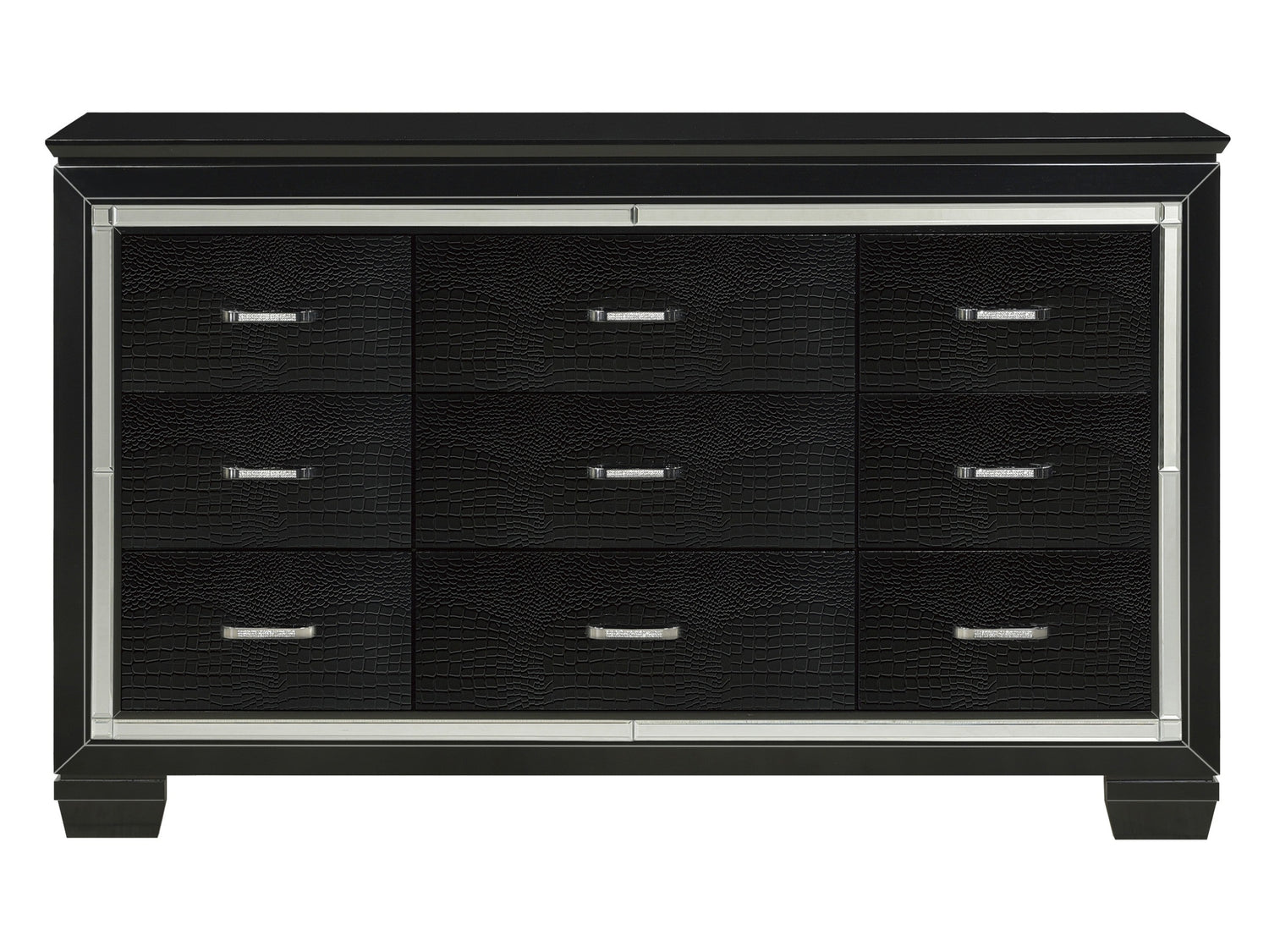 Glamour reigns in the design of the Allura Collection. Alligator embossing and high polished crystal-enhanced hardware boldly accent the black finish of the dresser.