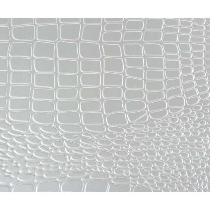 - Faux alligator embossed, textural drawer fronts with beveled mirror trim