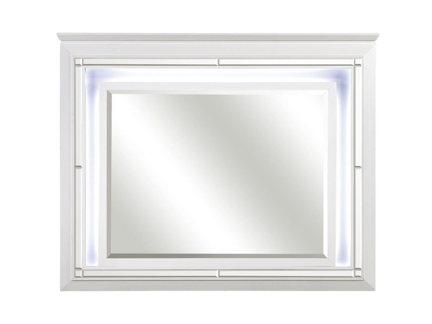 Glamour reigns in the design of the Allura Collection. The silver finish of the mirror frame is enhanced with decorative beveled mirror accents that reflect the illumination of the touch-engaged LED back-light.