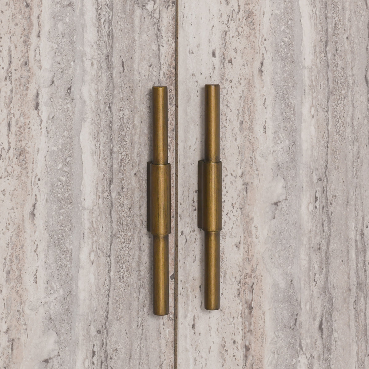 - Doors are designed to mimic the appearance of real travertine stone, but are made from a laminate material providing durability and longevity