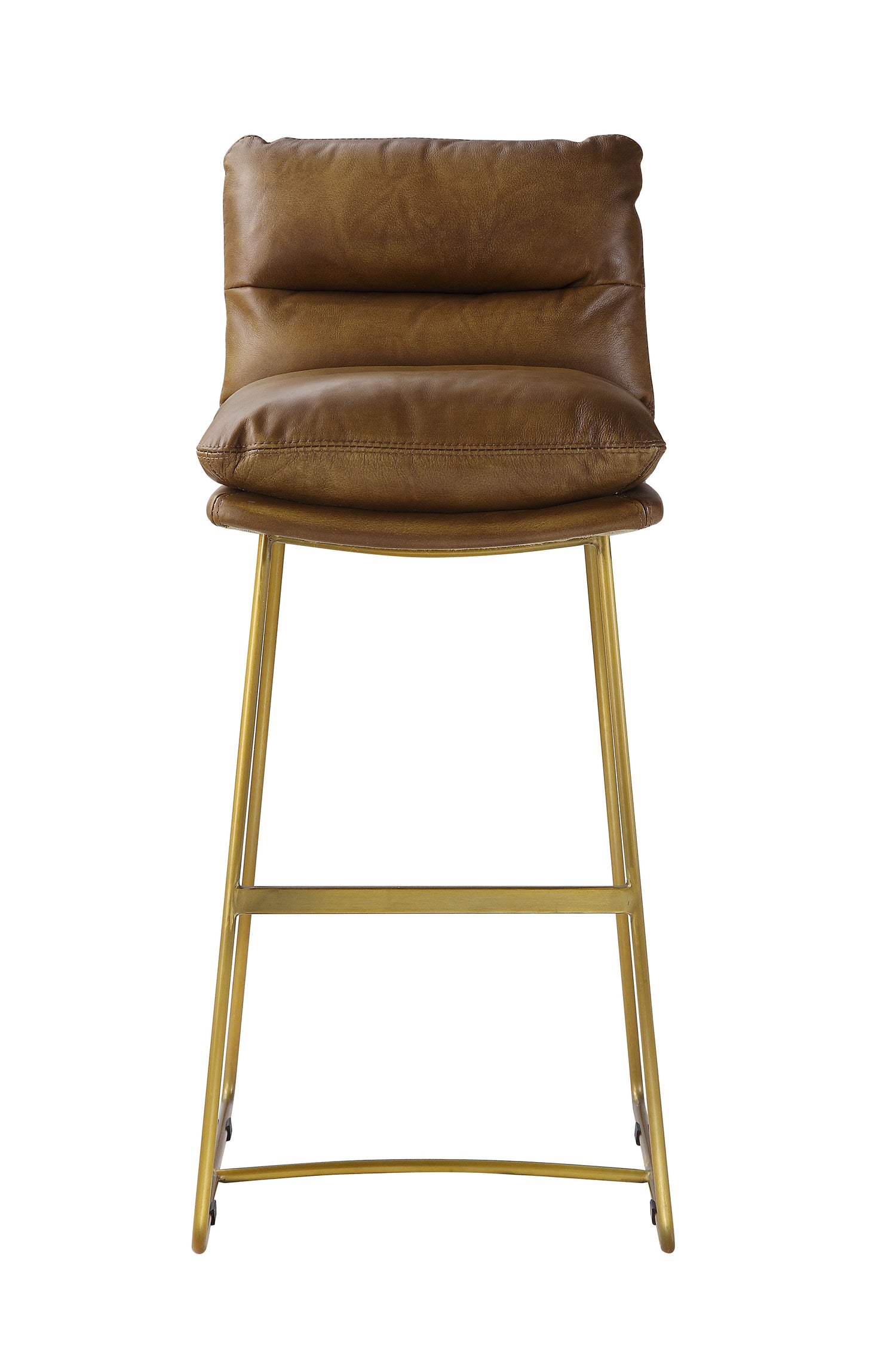 The amply padded Alsey makes it the most comfortable chair you'll ever find. Upholstered in top grain leather, this armless stationary chair features horizontal tufting on the seat and back cushion that not only looks great, but also better conforms to your body. The metal sled base features a crossbar foot rest for added comfort and stability.