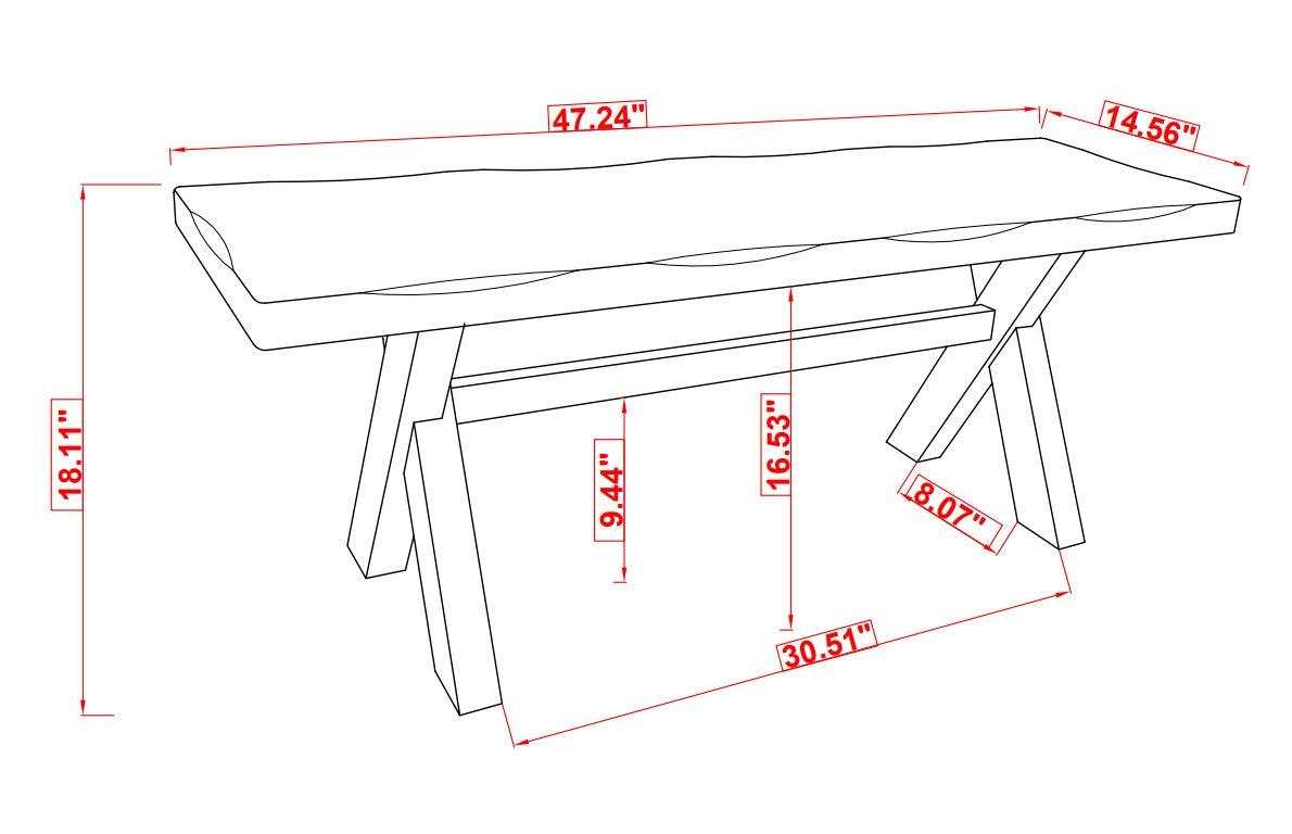 - Width: 47.25" Depth: 14.5" Height: 18"