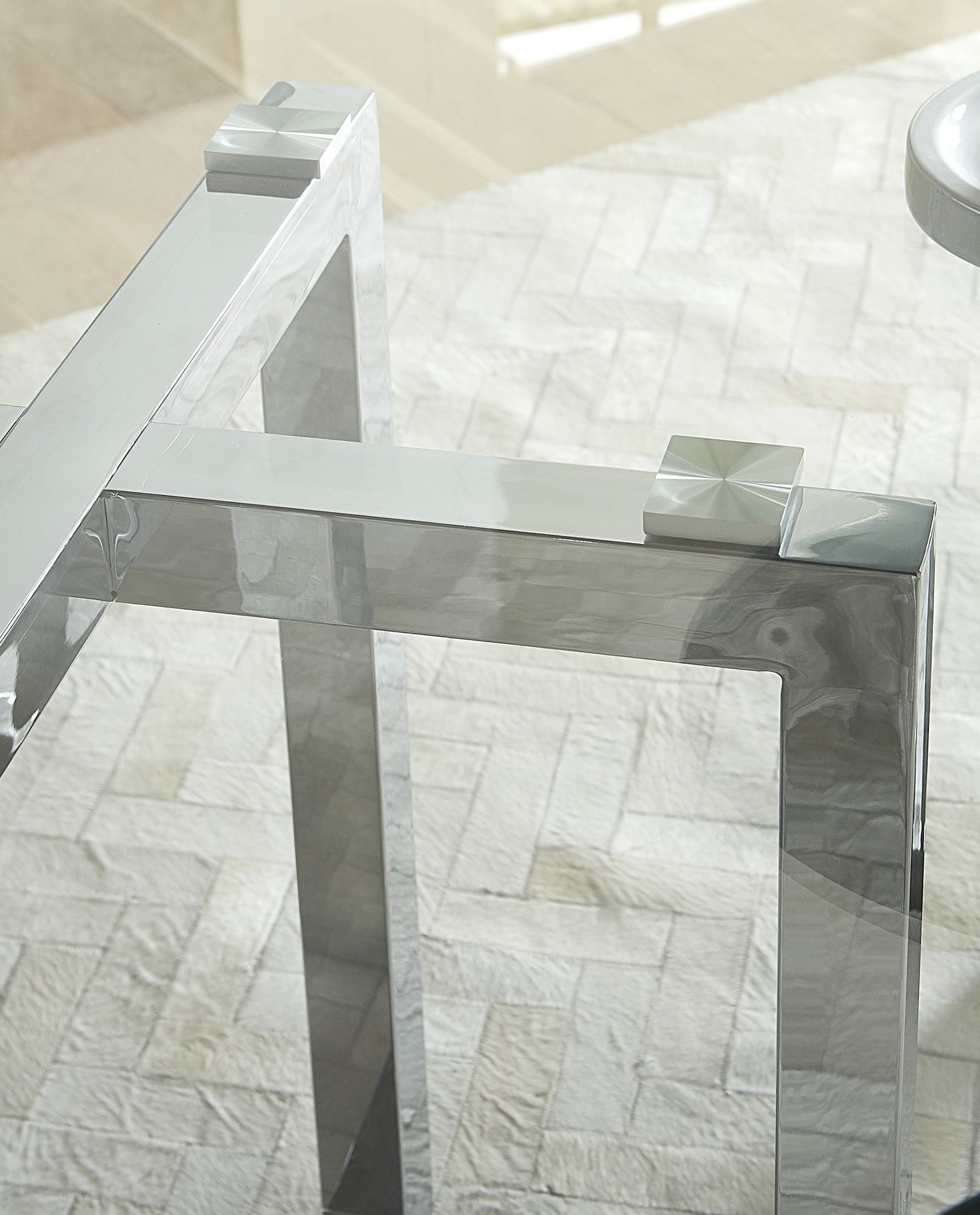 - 3 piece table base is carefully mitered and polished at the corners for a crisp modern look